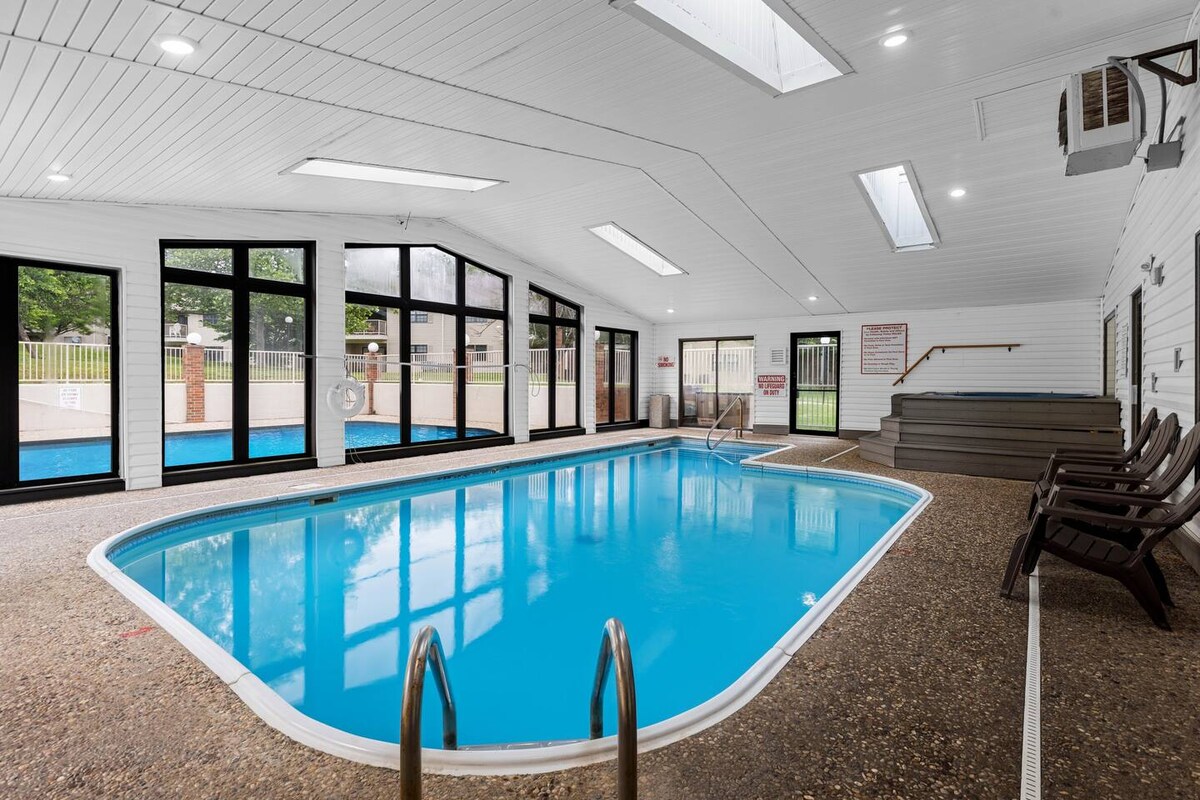 Our spacious 2 bed/2 bath ground level condo is just minutes away from top attractions. Enjoy the Indoor & Outdoor pools, hot tub and sauna. Easy access to the 76 Strip, Branson Landing, Silver Dollar City & Table Rock Lake. The unit has a washer & dryer, well-stocked kitchen, jetted tub, and a veranda with seating for 6. Stay entertained with high-speed internet, 55” TVs with streaming services, board games, and children’s books. The perfct place to rest, relax and create lifelong memories.