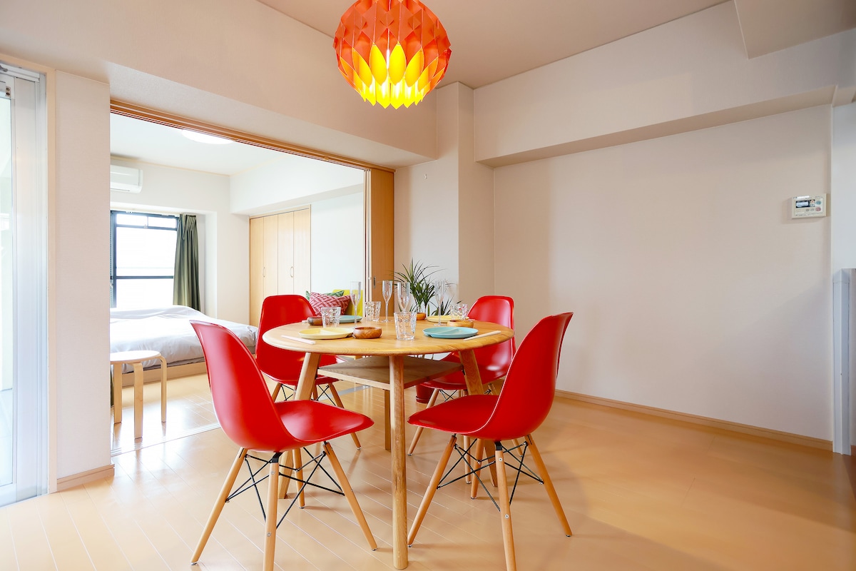 【NEW Open】小倉エリア|赤いチェアが映えるナチュラルモダンルーム|最大4名宿泊