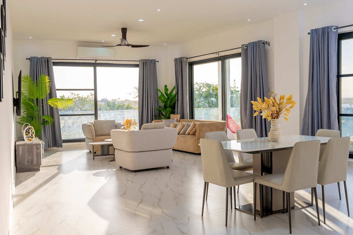 Fully furnished Modern family friendly apartment with 2 muster bedrooms air conditioning,kitchen, dining area located in Tanga with unique and peaceful environment and excellent WiFi