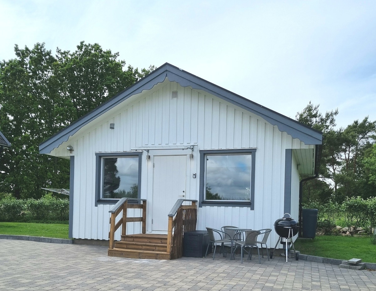 The cottage has a private location in the garden with no traffic. 5min from highway E6, 5km to the center of Varberg, 25min to Ullared. Kitchen (built June 2016) Bathroom (built June 2017) is available in the cottage. Barbeque grill is available. The cottage is equipped with aircondition.