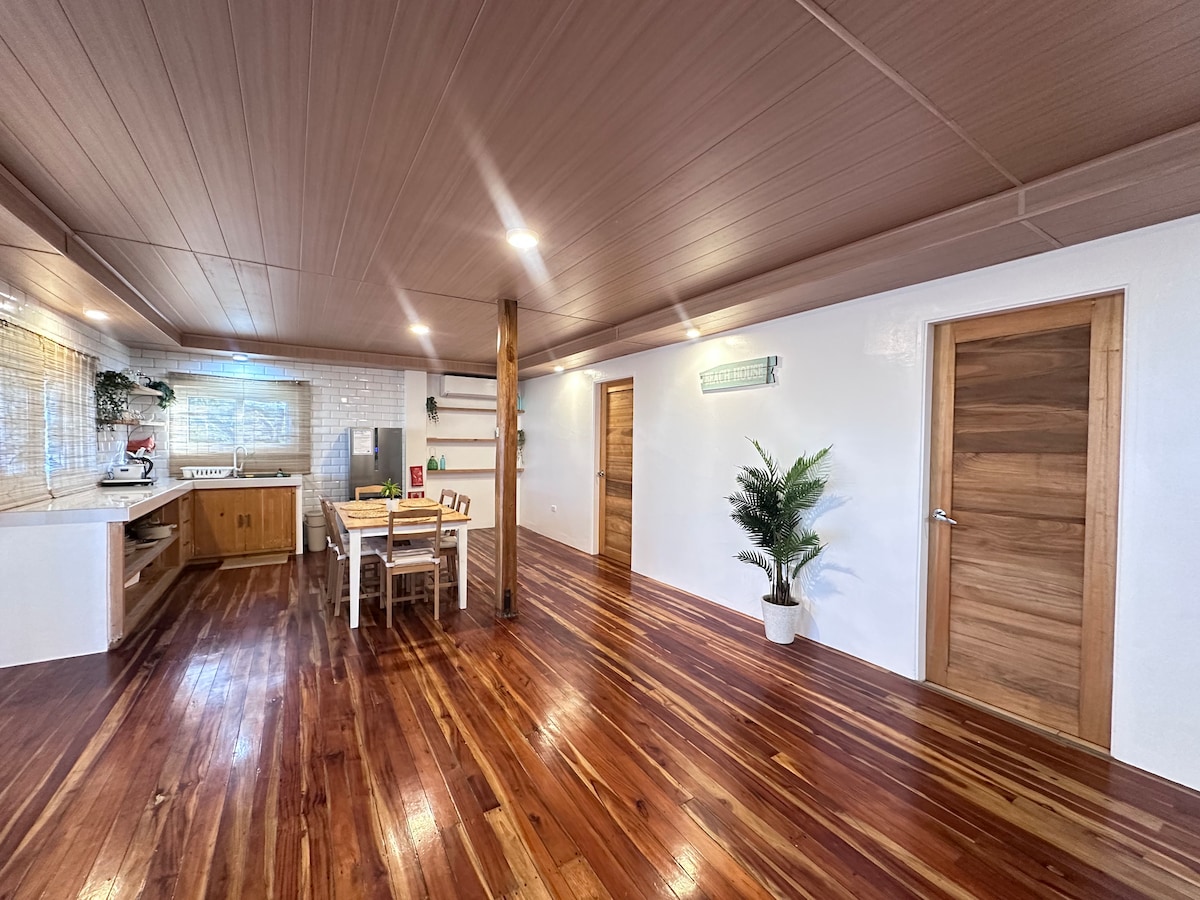 Kick back and relax in this calm, stylish tiny house. Fully air conditioned home with parking, kitchen, outdoor shower and grill. Furniture includes a Queen bed, 3 seater sofa, 3 dining chairs, foldable dining table, wardrobe cabinet with drawers, study table (convertible to vanity with mirror) with a chair. A valid government ID may be required especially for longer stays.