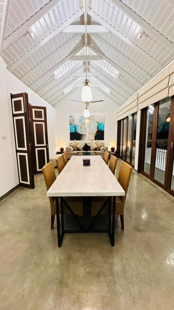 This uniquely designed one-bedroom villa with a private pool offers complete privacy and comfort —making it the perfect retreat for couples and honeymooners. Huge window fronts throughout the villa open up to lush jungle greenery, giving you the feeling of sleeping in the heart of nature while staying protected and fully comfortable with air-conditioning. Nestled in the tropical heart of Madiha, Sri Lanka, this peaceful escape blends raw natural beauty with luxury and seclusion.
