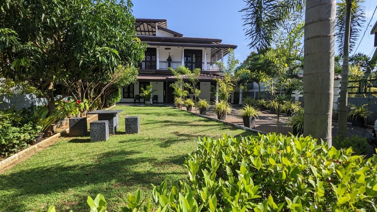 🌿 Welcome to our Home! 🏡✨ Nestled just an 8-minute stroll away from the surfer-loved shores of Hiriketiya Beach, our artisanal haven beckons you with its local charm. We like to see the house as a place where simplicity meets comfort. One bedroom with clothing racks and a wardrobe for your things, a kitchen and living room with cozy seating, a bathroom with hot water and even a washing maschine to use await your arrival. Bask in the serenity of our beautiful patio and lush tropical garden.