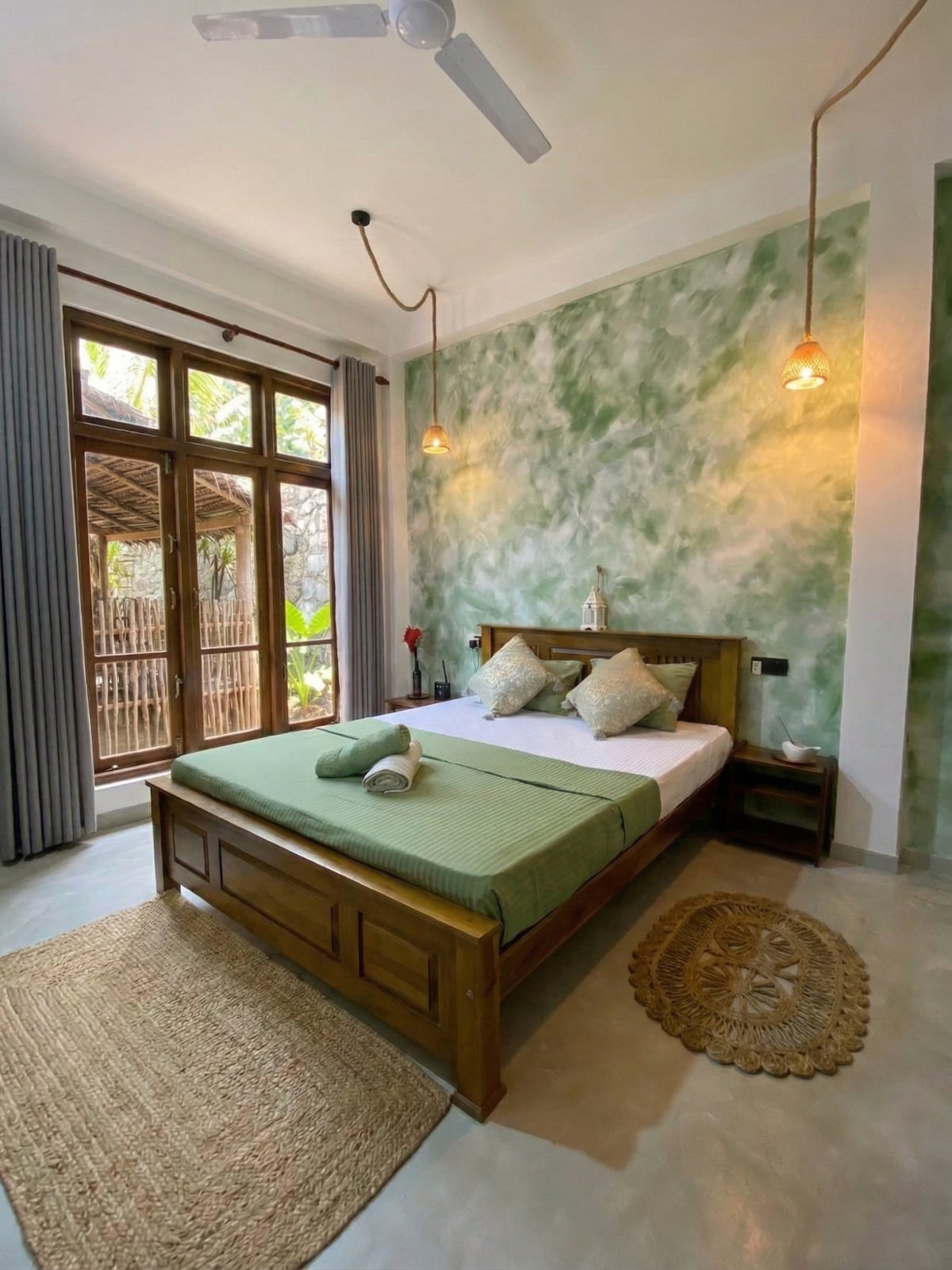 – 15 Minutes’ Walk to Hiriketiya & Blue Beach – Elegant Private Villa with Lush Garden & Patio – Spacious Air-Conditioned Bedroom with Premium Comfort – Stylish Modern Bathroom with Hot Shower – Fully Equipped Kitchen for Gourmet Cooking – Personalized Care & Local Insights from Shakila & Family