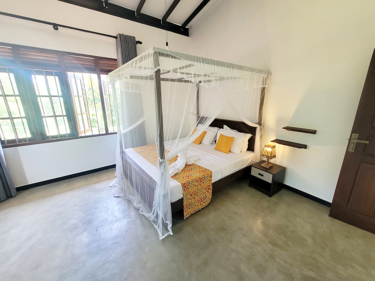 The Loft is a newly built guest house designed to provide all the comforts you need for a relaxing stay. Located in a safe and peaceful area, it's just a 3-minute walk to the beautiful Midigama Beach. You will enjoy: - Air-conditioned room designed by a professional architect - Modern bathroom with solar-heated hot water - Fully equipped kitchen - Automatic washing machine - Fast internet boosted by an external antenna