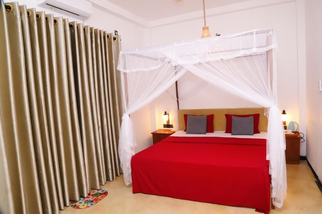 Experience comfort at Astro Villa’s first-floor suite, featuring an A/C bedroom, private kitchen, and bathroom. Relax on the balcony and soak in the tropical vibes, just a short distance from Weligama’s hotspots like Marriot, W15, and Kurumba Bay. Perfect for couples or solo travelers, this stylish space offers free Wi-Fi, parking, and a cozy ambiance. Whether you’re here for surfing, dining, or simply unwinding, this private getaway ensures a hassle-free and memorable stay.