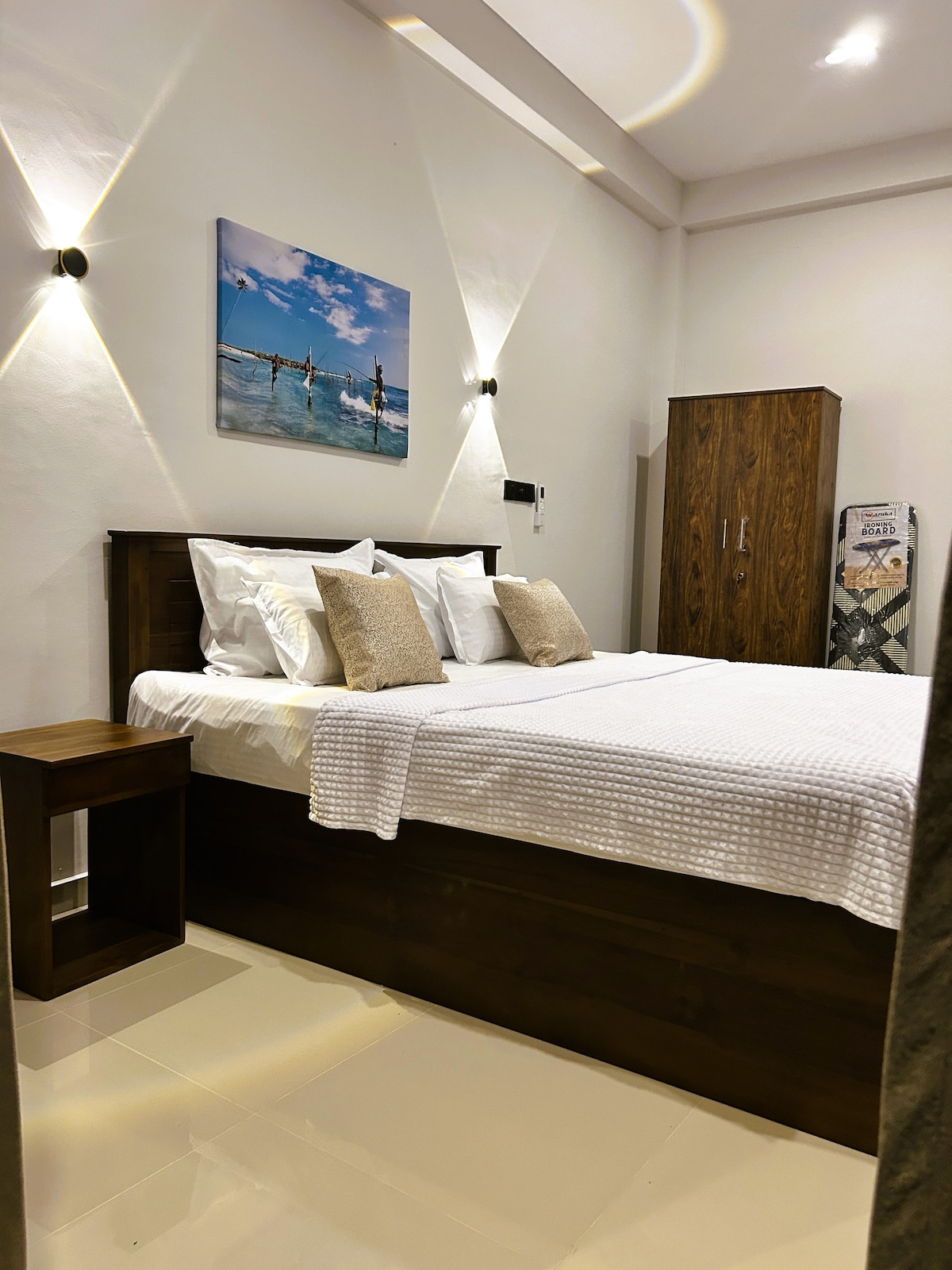 Sana Guest is situated in Weligama city center and we welcoming Guests to our facility,who needs to spend their holidays luxuriously and comfortably.Free WiFi is featured throughout the entire property and free private parking is available on site. Every Room is Air Conditioned and equipped with Ceiling fan as well. Also large double beds with spring mattress, Dressing table, and Cupboard exist in each room. We facilitate airport shuttles and Blue whales watching in Mirissa.