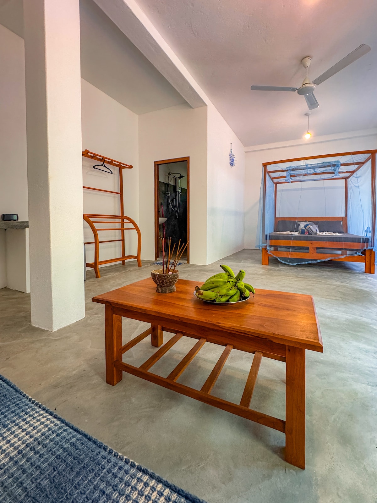 Soul Wood Cabana offers a one-of-a-kind, nature-inspired retreat crafted entirely from natural wood, delivering an immersive, rustic experience. The open bathroom adds a unique twist, where mango and cashew trees grow within the space, blending indoor comforts with the outdoors and creating an enchanting ambiance. Soul Wood Cabana provides guests with a rare chance to connect with nature while enjoying a serene, beautifully designed space.