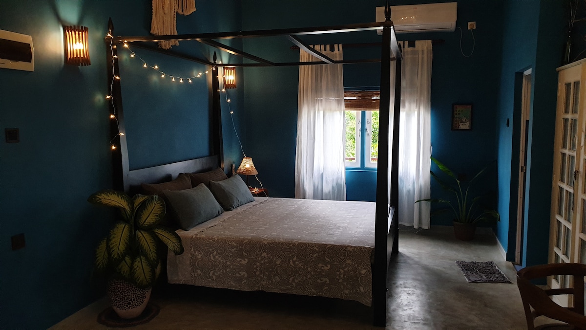 House Leo is a stunning 2 bedroom villa with beautiful lush green garden, perfect for couples, friends or families. The property is nestled on a quiet village road just walking distance from the very best massage spots, yoga, gym, beaches, shops and restaurants. Wander down the shaded winding road for a morning surf, a day at the beach, a yoga class, a workout or enjoy sunset at Mirissa beach over a meal and glass of wine.
