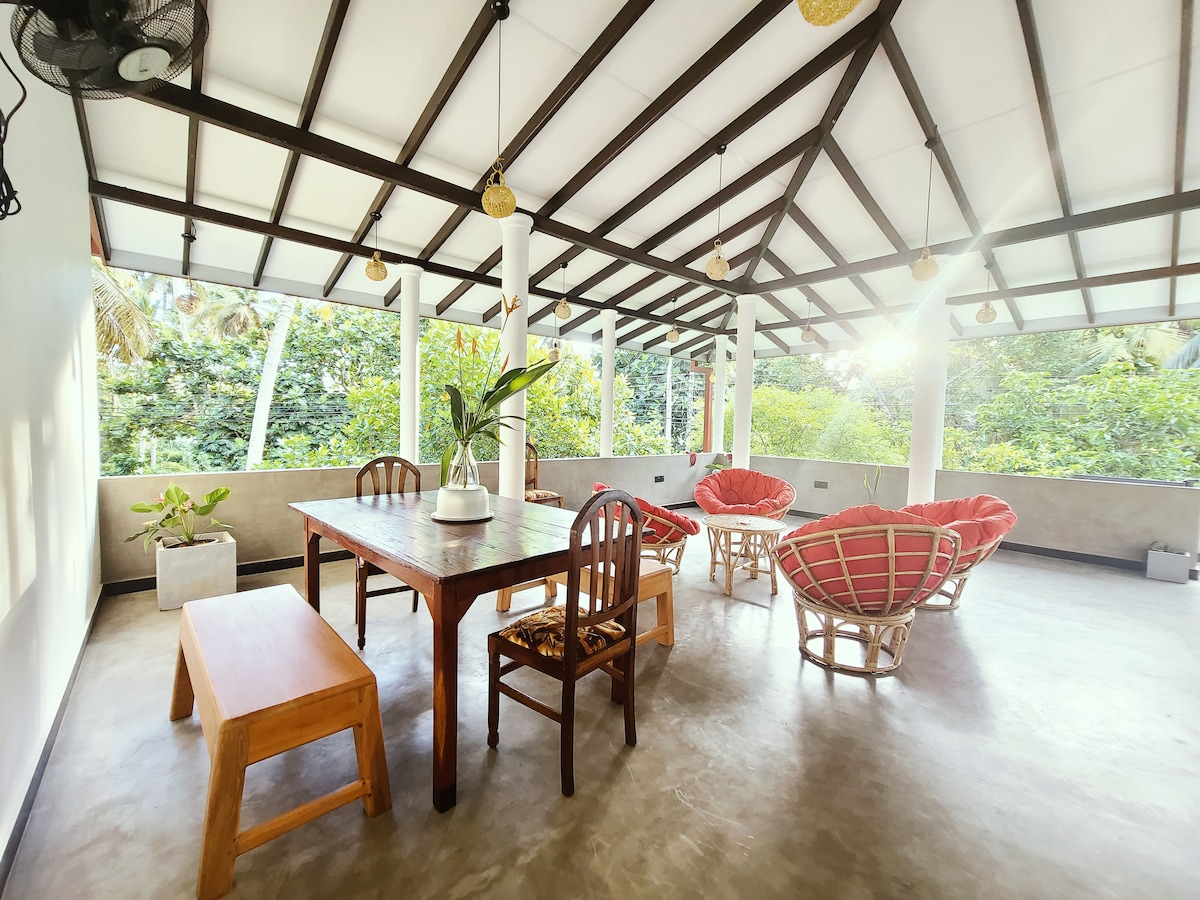 You won't forget your time in this romantic, memorable place in Tangalle, Sri lanka.Villa Chillax is a very special experience for a holiday with an exclusive, private & outstation service. located in few minutes away from most beautiful romantic silent beach with the blessings of greeny surrounding, sea breezes & sounds of splashing waves The villa consists with a fully equipped kitchen & modern bathroom,large veranda with the view of well maintained garden with exotic plants, trees & flowers