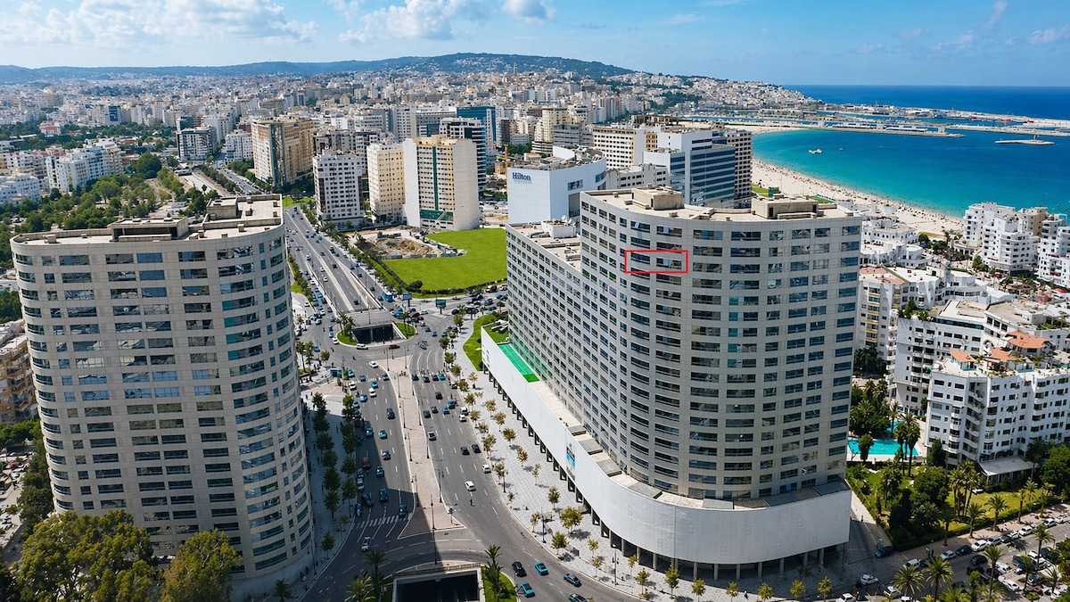 Au 18ème étage de la View Tower (immeuble Hilton), cet appartement offre une vue plongeante sur le grand boulevard de Tanger — l'adresse idéale pour profiter de la ville. 🚉 Gare TGV à 1 min à pied 🏖 Plage à 5 min à pied 🛒 City Mall au rez-de-chaussée 🚗 Parking privé sécurisé Chambre cosy · Salon lumineux · Cuisine Bosch · AC · Wi-Fi fibre · IPTV · Salle de bain moderne. Un appartement bien pensé, tout équipé, au cœur de Tanger.