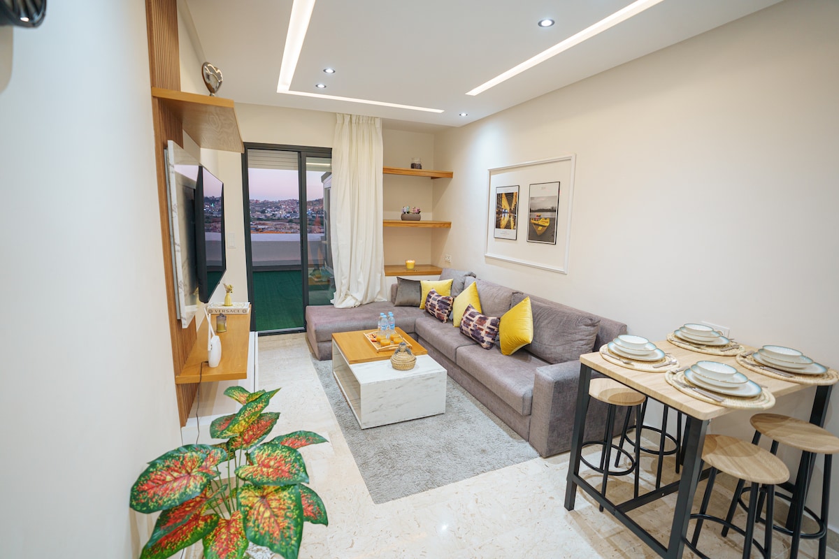 Welcome to Tanger City Residence. A modern apartment designed to feel calm, comfortable and easy from the moment you arrive. The layout creates a smooth, relaxing atmosphere—ideal for families or a stay with close friends. You settle in effortlessly, the pace softens, and your time in Tangier starts to unfold naturally. With the high-speed station across the street and the beach and restaurants just minutes away, everything is simple. A comfortable home base for exploring Tangier with ease.
