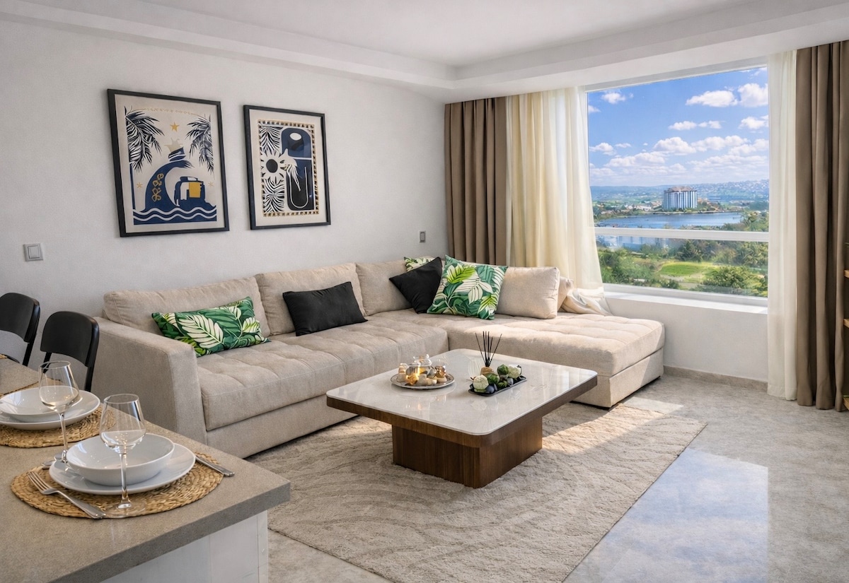 Appartement d’exception où chaque détail a été soigneusement pensé pour offrir confort et élégance. Il propose un design contemporain haut de gamme mêlant mobilier moderne, matériaux de qualité et finitions soignées. En plein cœur de Tanger, à deux pas de la gare TGV, du Mall et de la corniche, il s’adresse aux voyageurs en quête de confort, de raffinement et d’un emplacement stratégique. Parking privé inclus.