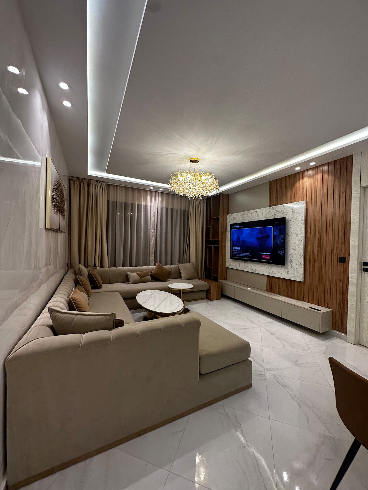 **Merci de lire la description jusqu’à la fin** Découvrez notre charmant appartement à Tanger, idéalement situé dans un complexe fermé et sécurisé, à deux pas du Movenpick, du Casino de Tanger, ainsi que des cafés et restaurants. Profitez d’une magnifique terrasse spacieuse avec vue imprenable sur la baie de Tanger, parfaite pour un café le matin ou un apéritif au coucher du soleil. Idéal pour couples et familles en quête d’une escapade inoubliable.