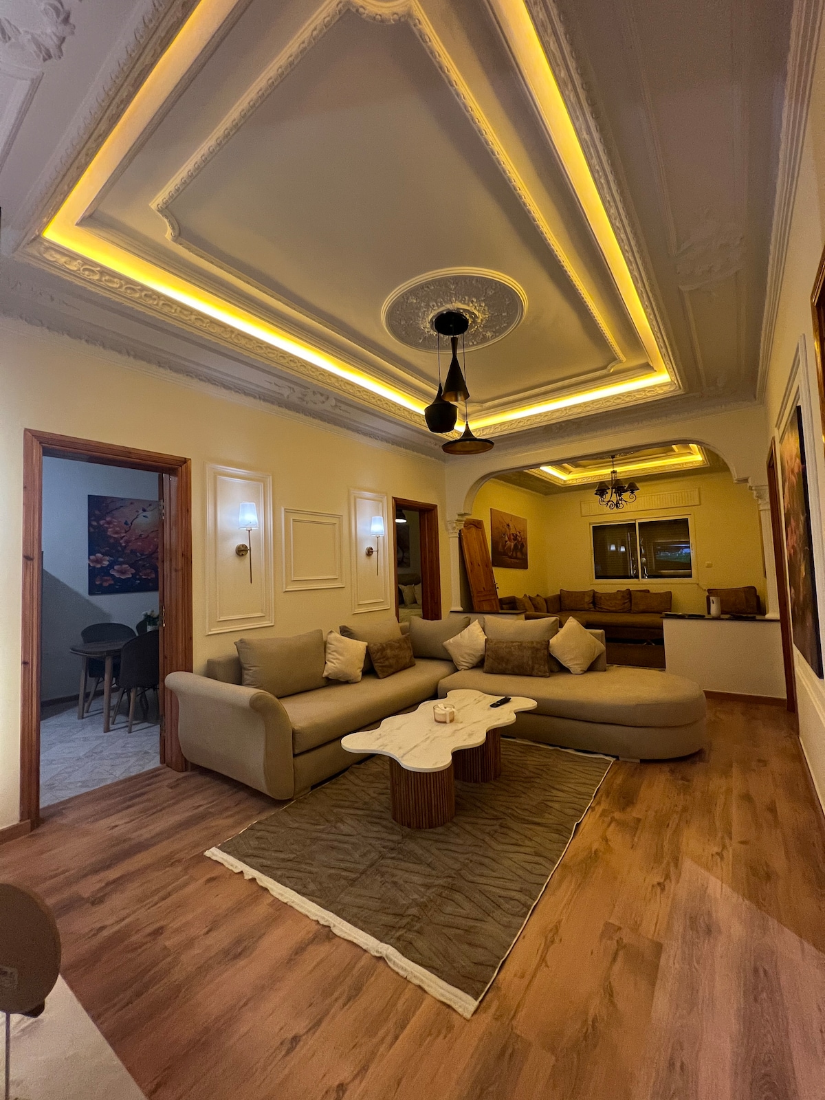 Welcome to our charming 3-bedroom apartment nestled in the vibrant heart of Tangier's hyper center. All necessary amenities are available: Air-conditioning, Smart Tv, Netflix, fiber-optic internet connection, coffee machine, towels, shower amenities, etc Located on the last floor of the building with elevator access, you are just a few stairs away to access the incredible rooftop and admire breathtaking views of Tangier, Spain, the straits of Gibraltar and the mountains of Chefchaouen.
