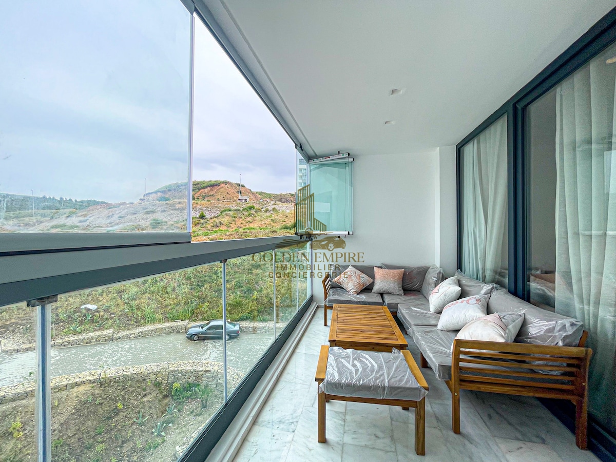 Découvrez notre charmant appartement à Tanger, Idéalement situé dans un complexe fermé et sécurisé , il se trouve à deux pas du Movenpick et du Casino de Tanger, ainsi que cafés et restaurants. Profitez d’une magnifique terrasse spacieuse offrant une vue imprenable sur la baie de Tanger , idéale pour savourer un café le matin, ou un apéritif en admirant le coucher du soleil. Parfait pour les couples et les familles, cet appartement est l’endroit idéal pour une escapade inoubliable.