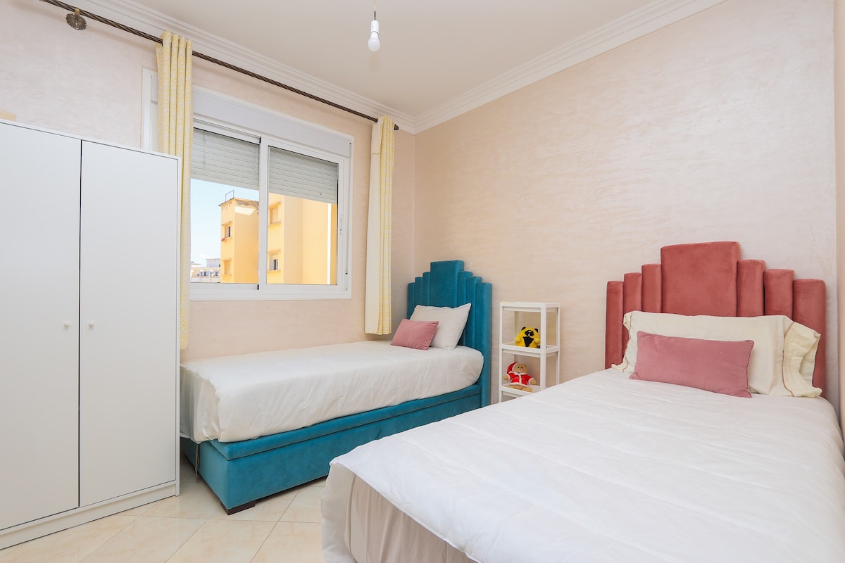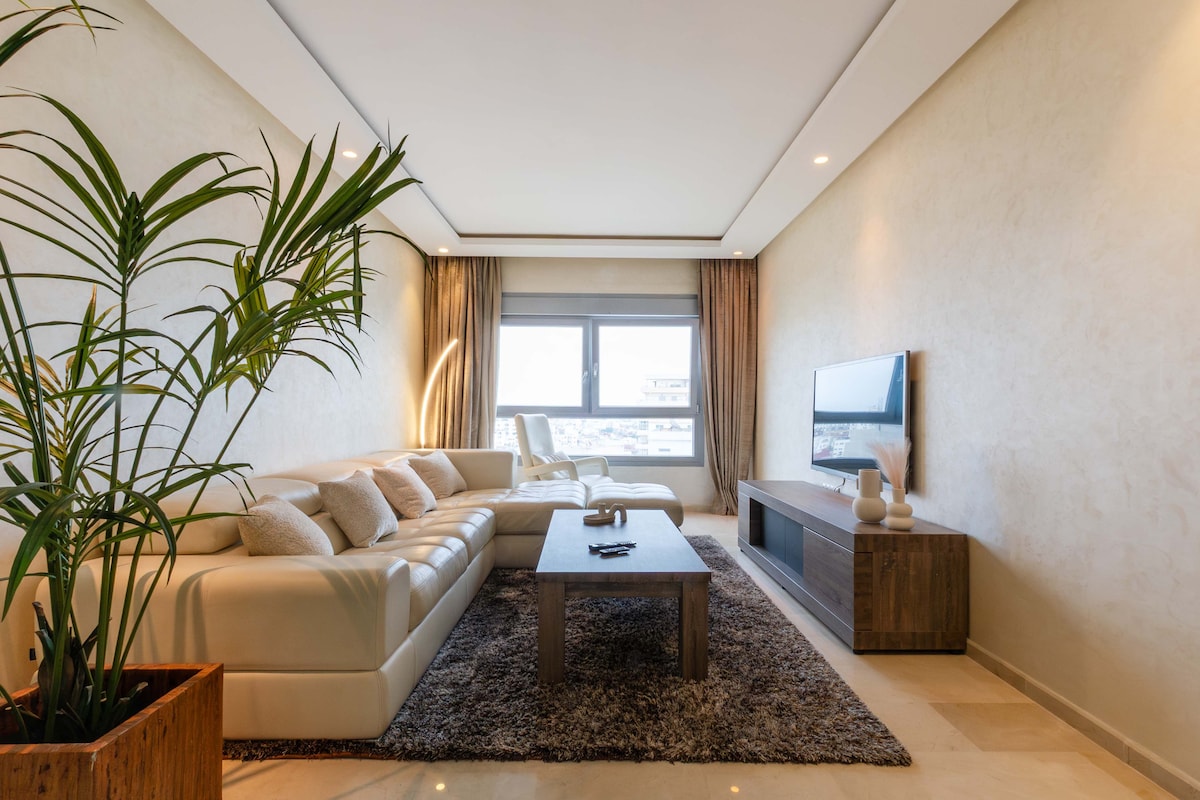 MERCI DE LIRE AVANT DE RESERVER Pour une expérience unique à Tanger, Bienvenue dans notre appartement moderne idéalement situé à 0 km du centre de Tanger, nous vous proposons cet appartement élégant aux couleurs sobres et épurées, en plein cœur de Tanger. A deux pas des endroits branchés de Tanger, Notre appartement vous promet élégance et praticité Remarque important: - Appartement au 4éme étage SANS ASCENSSEUR. - Appartement destinée uniquement à une clientèle familiale ou COUPLE MARIÉ.