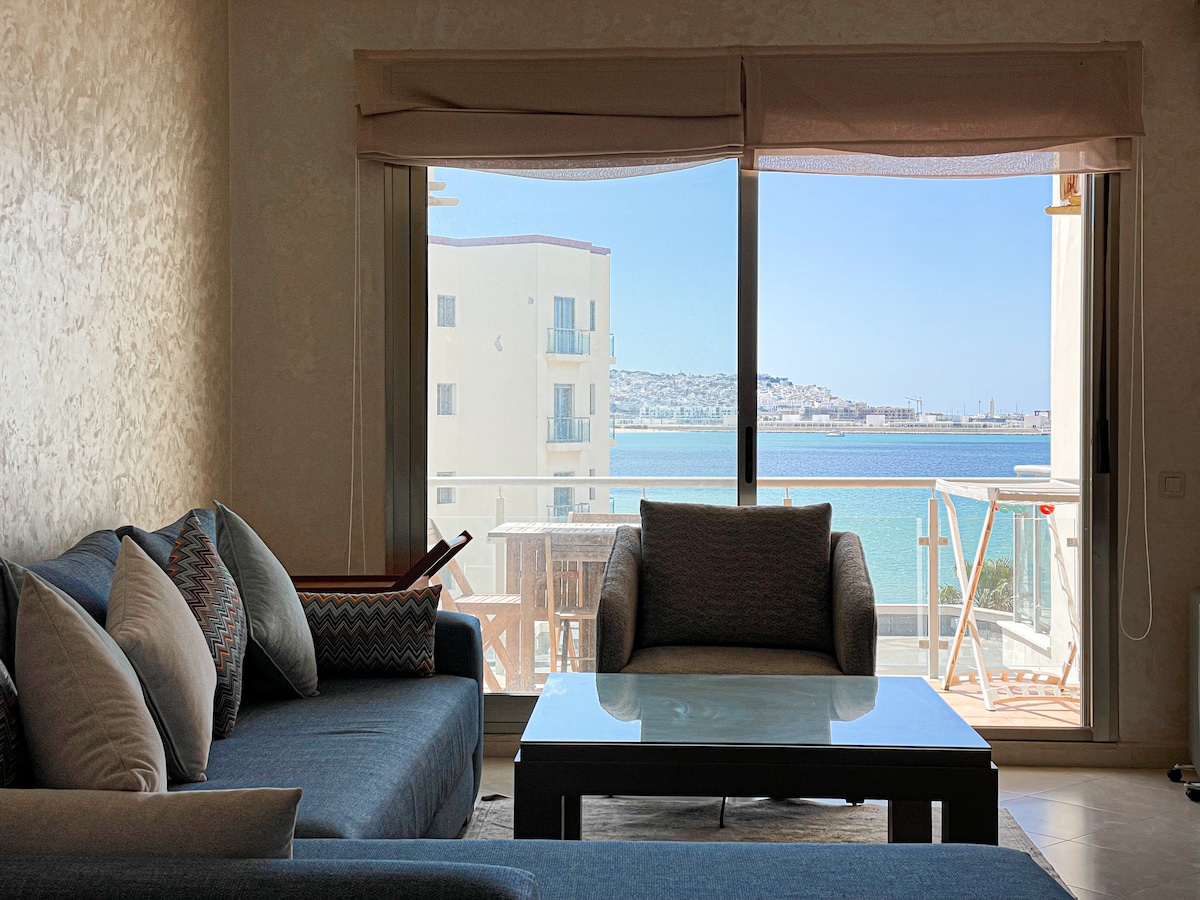 Are you looking for an ideally located apartment in the heart of Tangier, close to 5-star hotels but much more affordable and with a much lower price? Look no further! Book now and enjoy comfortable and elegant accommodations. Our apartment is a true oasis of comfort and style. You'll be immediately captivated by the spectacular panoramic sea view that stretches out before you, creating a dreamlike atmosphere for your stay.