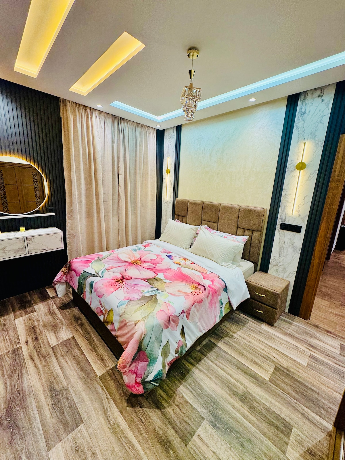 Welcome to DARLYN, a beautiful modern 49 m² apartment on the 1st floor, located in the heart of Tangier. Enjoy a comfortable stay with fiber optic internet, TV with Netflix, a spacious bedroom, 3-meter high ceilings, a fully equipped kitchen, and a private bathroom. Everything is within walking distance: supermarkets, restaurants (Moroccan, Italian, Indian, Japanese...), bars, pubs, nightlife, and tourist sites. The Medina and Tangier beach are just 10 minutes away.