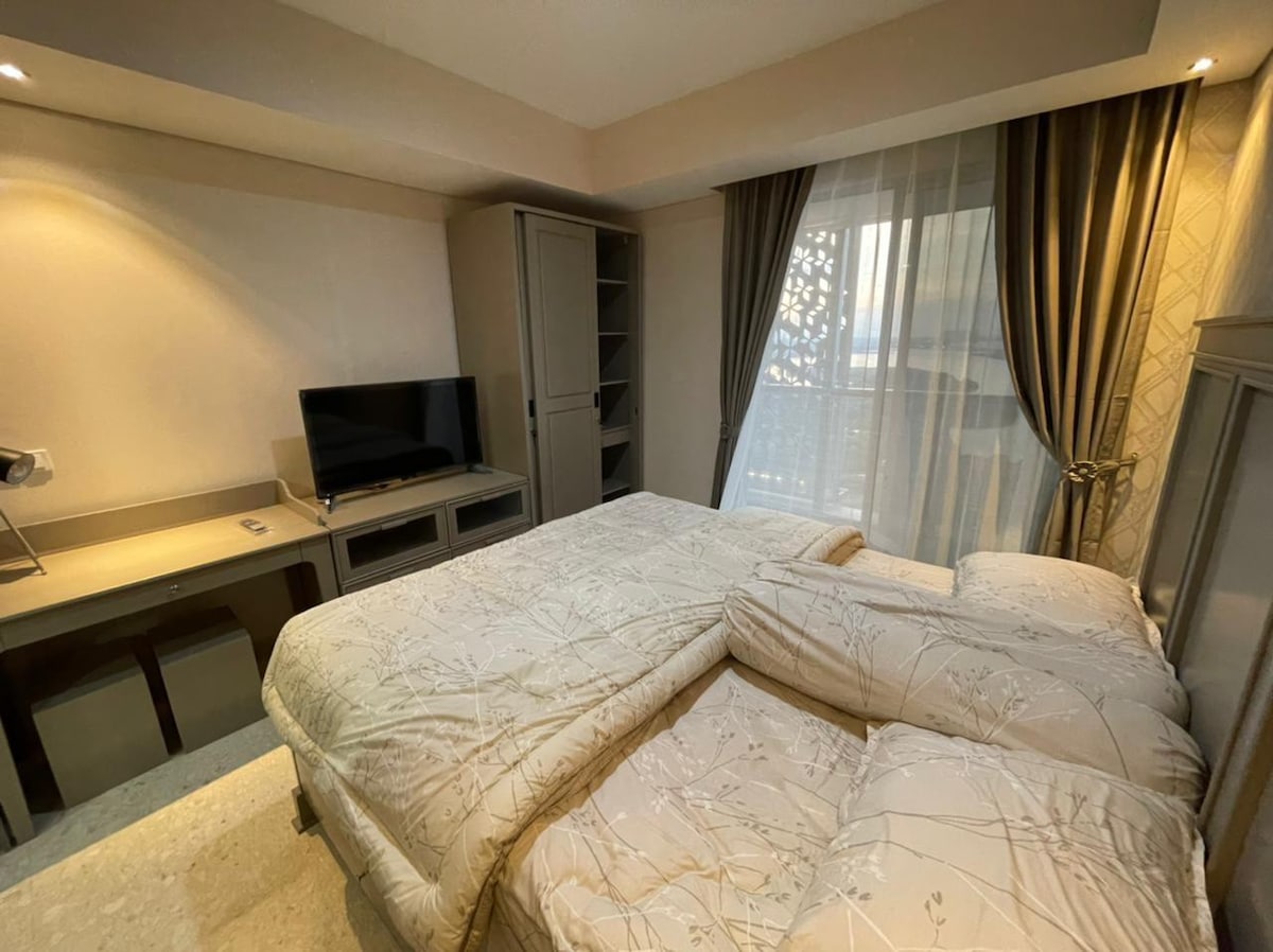 Located at the center of Tangerang, our fully furnished home offers cozy stays and direct access to TangCity Mall, shop, dining, and entertainment— Corner high floor, city view 2 BR, 3 Bed, 1 Bathroom 65,9 m2 • Fullset kitchen amenities & dining • TV • Convertible sofa • Washing machine • Refrigerator • Workspace • Cozy lobby • Indoor & outdoor lounge • Swimming pool • Children playground & pool • Billiard & games Direct access to shopping mall & bus stop 7 min to station 20 min to airport