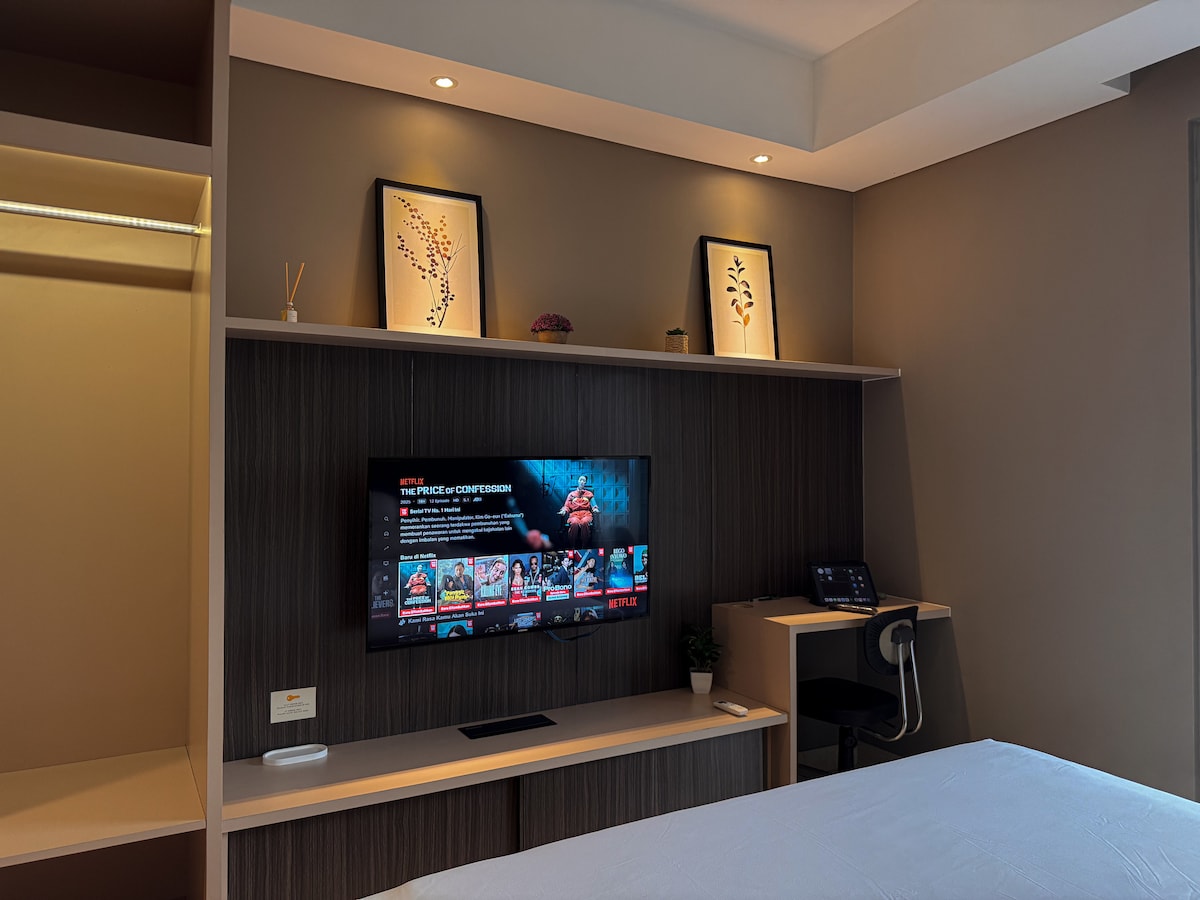 Located in a strategic place near a hospital, convenience store, and a lot of restaurants. A spacious minimalist interior one-bedroom apartment designed like a studio apartment (39,3 sqm) for you to enjoy your time in Jakarta! Spend your vacation time in this beautiful and cozy apartment for a great experience in Jakarta! Easy access to public transportation to travel around the city.