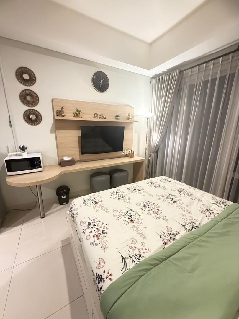 A cozy city-view stay with everything you need, right where you need it. What Guests Love - Connected to Green Sedayu Mall - shop/dine/cinema downstairs. - Strategic location to airport,PIK,offices,toll. - Resort facility - pool, gym, kids playground - Clean & bright room - large windows, balcony,city view - King Koil Queen Bed - Wifi - up to 33.2 mbps - Full kitchen - Full bathroom+hot shower - Washing machine Perfect For •Business trips •Tourist •Lay-over •Staycation •Employee •Family