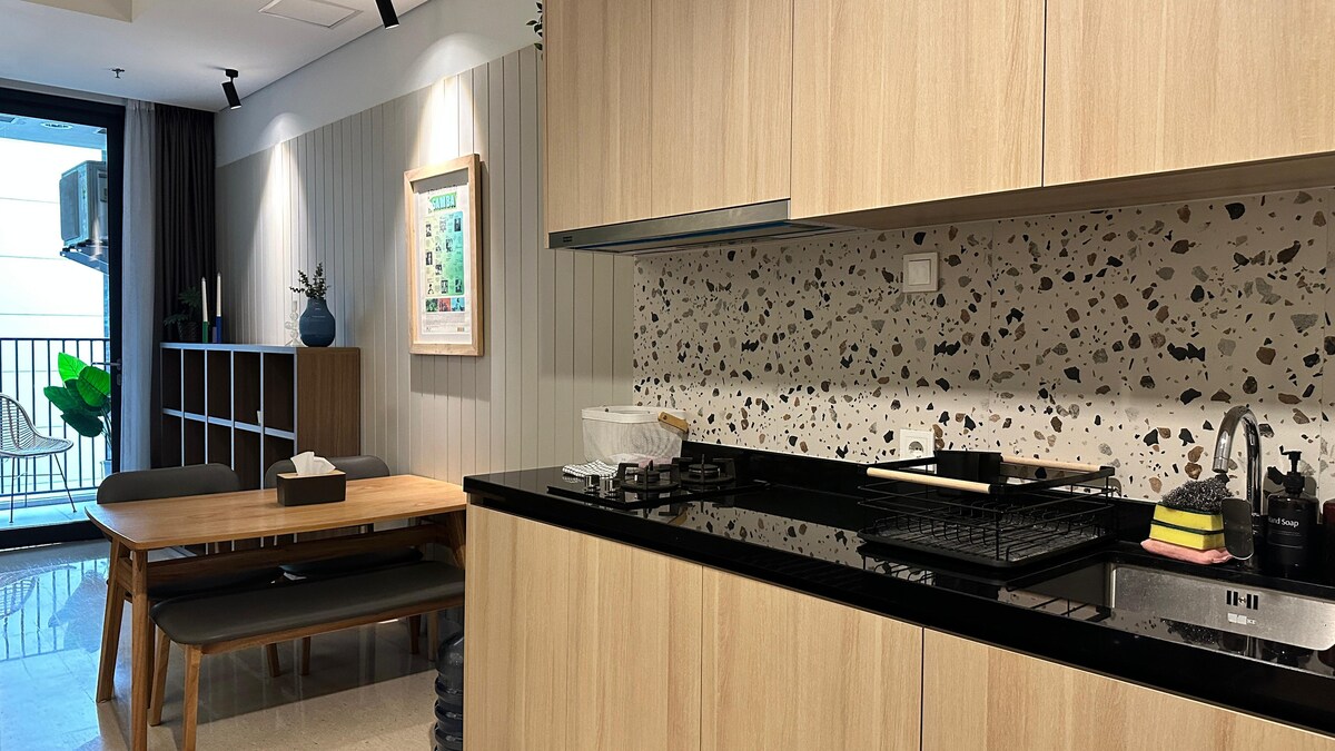 A spacious, cozy 1-bedroom apartment with a living room and balcony at Citralake Suites, West Jakarta's ideal lakeside getaway. Conveniently located just minutes from the Airport, PIK, Puri Indah and Sunset Avenue, it’s easy to explore the city. Step outside and you’re just a 1-min walk from Ciffest, a lively dining area with plenty of food options, supermarkets and ATMs. Our 1 BR unit provides a luxurious and comfortable space for up to 3 guests, with a kitchenette, Free Wi-Fi, and Netflix.