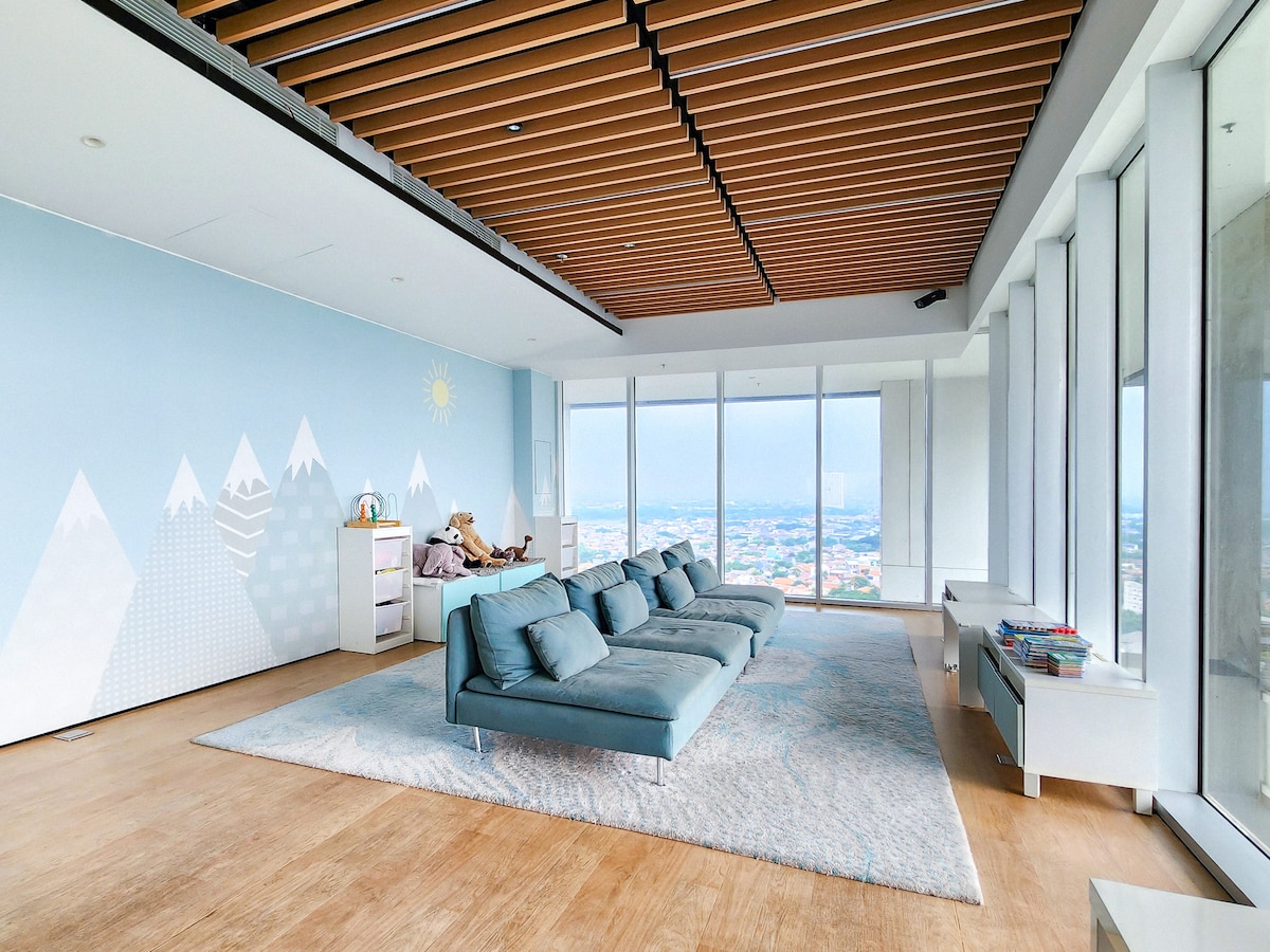 Forget your worries in this Spacious and Serene 3BR Condo in the heart of BSD City, where luxury and nature blend seamlessly 🌿 A perfect retreat to recharge with family and friends, offering the best of both worlds—a tranquil escape within the city's convenience. Whether you're on a staycation, ⛳️ golf/business trip, or retreat, immerse yourself in comfort and energizing home away from home. Experience where luxury, relaxation, and convenience converge for an unforgettable stay! 😉