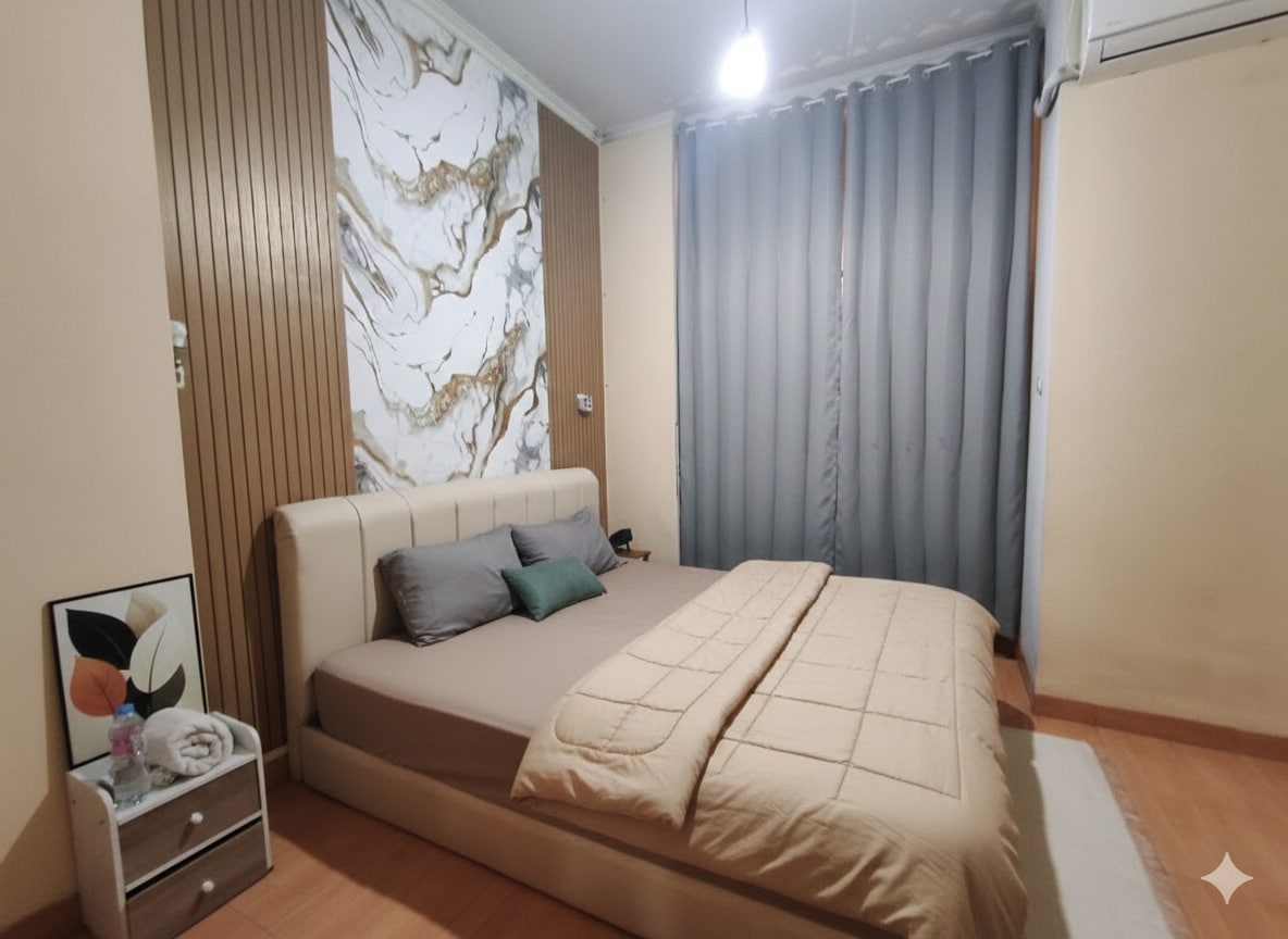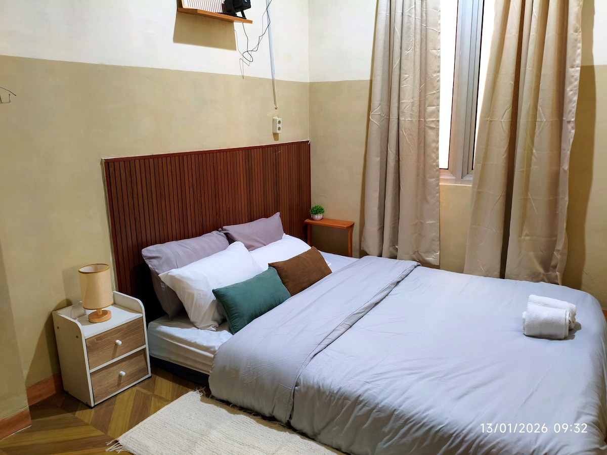 Cozy minimalist place with 2 bedroom on the 3rd floor, just 9.3 km from the airport. Enjoy air-conditioning, a comfy bed, and a private bathroom with a water heater. kitchen available for cooking. Perfect for short/ long stays, transit guests, or business trips. Clean, peaceful, and designed for your comfort