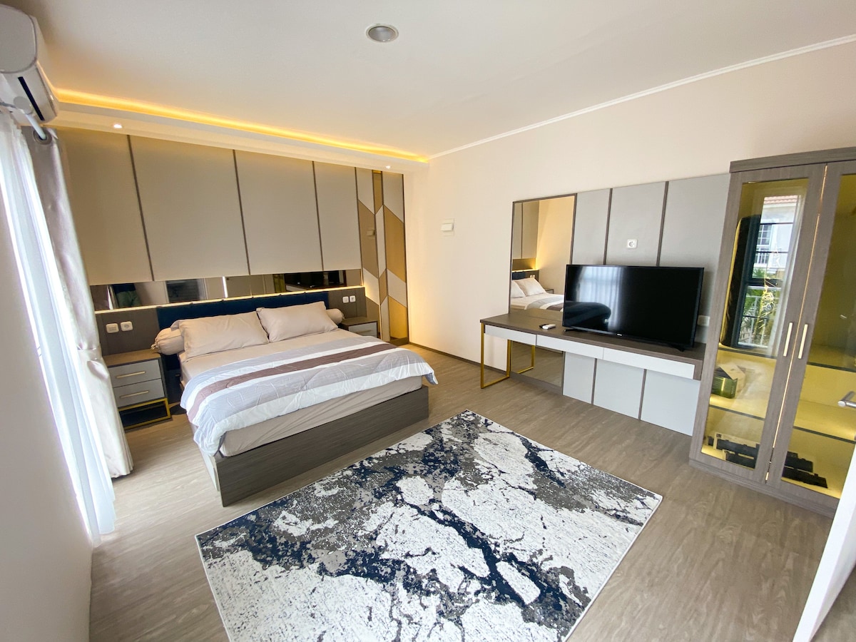 The only luxurious apartment in BSD area with direct access to private green botanical park featuring lake, jogging track, bike lane, barbeque are, and lot of Instagramable spots. Walking distance to BSD city office district, the Breeze, AEON mall, ICE Convention Hall, Prasetya Mulya University & Nanyang International School. Cozy & comfortable unit with astonished city view, equipped with brand new electronics & furniture. You will find it as excellent place for both business & vacation stay.