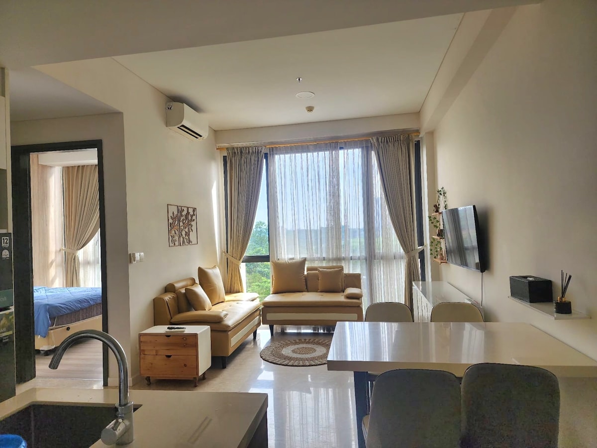 A cozy and luxurious place in The Branz, a japanese quality apartment with premium atmosphere Fast wifi 100 Mbps Apartment facilities (gym, indoor pool, outdoor pool) Free parking Smart TV for Netflix & youtube Pet friendly 3 minutes to ICE 1 minute to AEON Mall Close to Green Office Park, Edutown, The Breeze, Pasar Modern BSD, and hospitals In-room facilities: Potable tap water Microwave Fridge Air conditioning Stove Washing machine Hot water Please input the number of guests accordingly