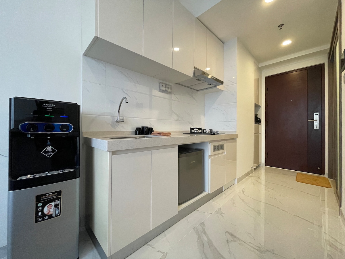 10 minutes to ICE BSD 8 minutes to Aeon Mall 6 minutes to The Breeze BSD Very suitable if you are looking for a premium atmosphere stay! Enjoy 100 Mbps High Speed Internet. There is a comfortable desk, suitable for laptop work / remote working. 40" LED TV is Netflix & YouTube ready Fridge, Mineral Water Dispenser, Microwave available. Canned gas stove is available for light & simple cooking. Small frying pan & small soup pot also available.