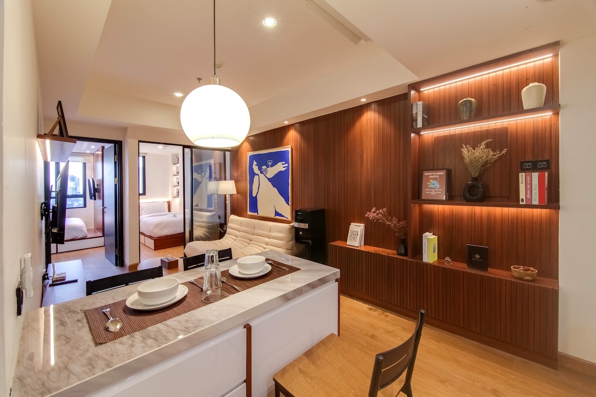 Modern Upper West apartment with warm interiors and a private city-view balcony. Enjoy an infinity sky pool, Life Fitness gym, coworking space, meeting & game rooms, and on-site coffee shop. Just a 3-minute walk to AEON Mall & supermarket ideal for business trips, couples, and long stays.