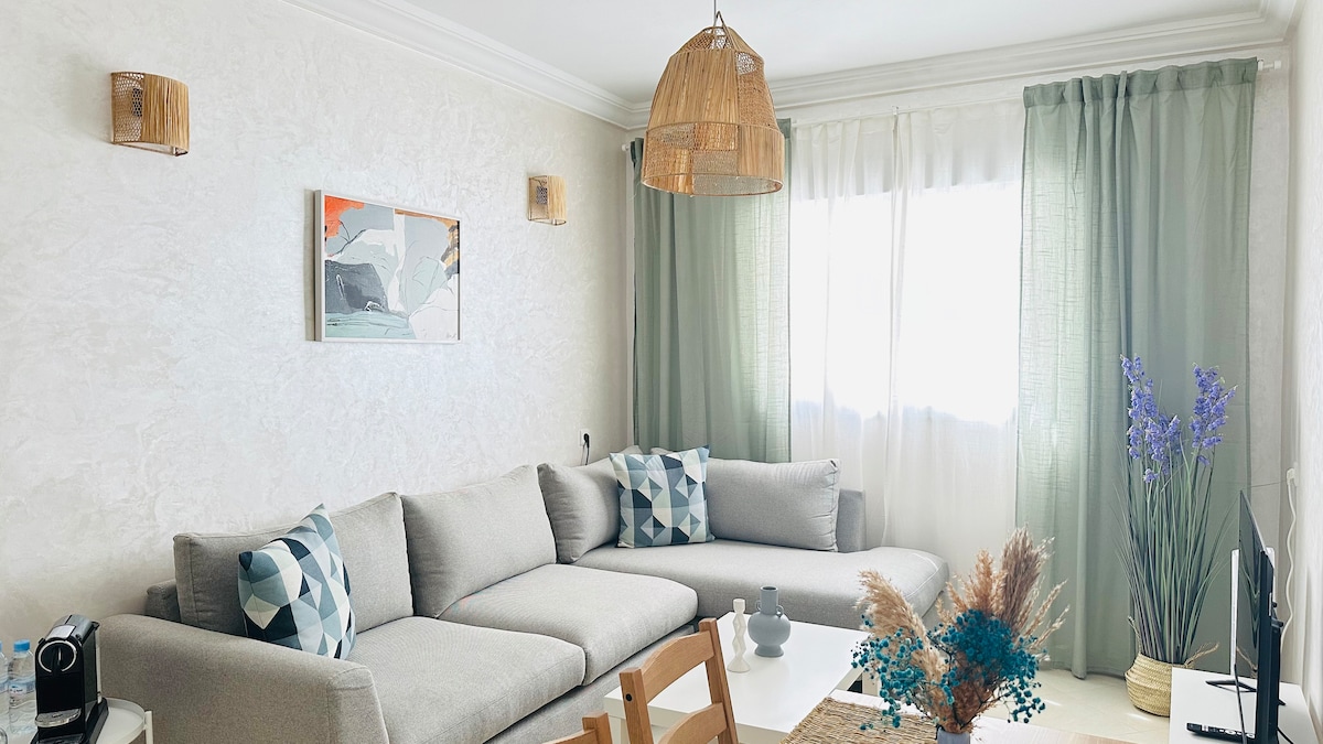 Très bel appartement moderne et cosy, dans une résidence de haut standing au coeur de Tanger. Il dispose d’une chambre et d'un salon très joliment décoré, d'une cuisine très bien équipée, et d'une jolie salle de bain. L'appartement offre tout le confort d'un bel hôtel, et est situé dans un quartier central avec tous types de commerces Idéal pour un séjour touristique ou professionnel ! NB: