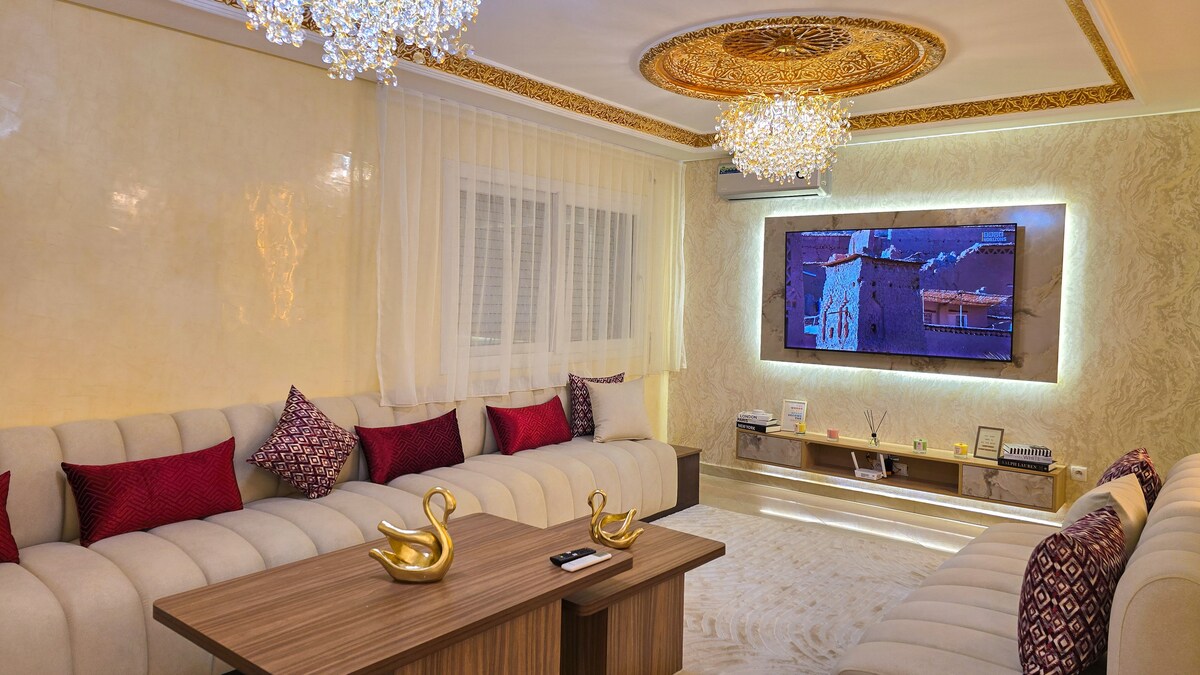 ✨ Enjoy a stay in a luxurious apartment 🏙️ with panoramic views of the sea 🌊 and Spain 🇪🇸. Located in the heart of Malabata, on the lively corniche, just steps from beaches 🏖️, restaurants 🍽️, and shops 🛍️. Modern and fully equipped ✅: air-conditioned living room, open-plan kitchen, 65” TV with Netflix, balcony, Skyview ceilings, solid wood furniture, baby crib, foldable desk, super-fast Wi-Fi, and a small swing for children 🎠.