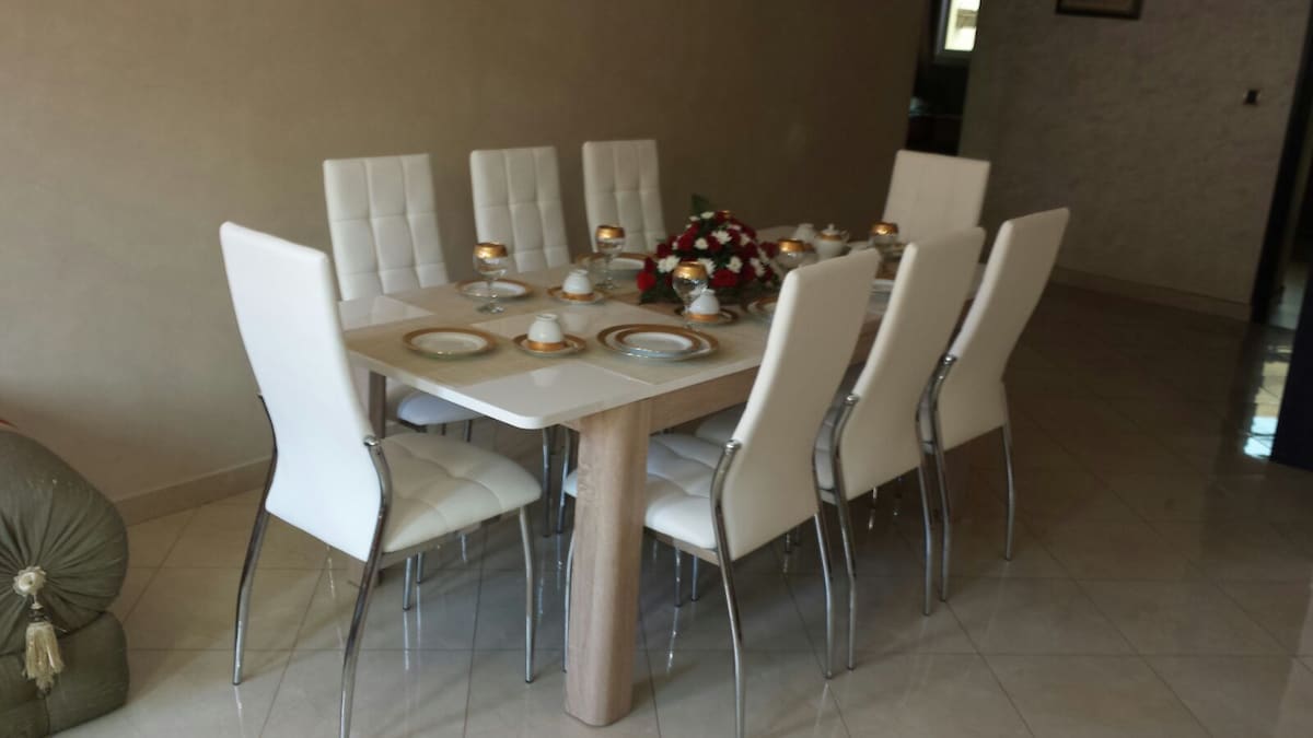 New apartment in a popular area, close to all social amenities, about 10 minutes from the airport (Ibn Battuta). To the west is the famous beach (Sidi Kacem). This fine sand beach offers you all the comfort and tranquility you need. With a view of the planes landing. It is about 7 minutes from the apartment, and you only have 3.6 km to reach the historic monument of the city of Tangier (the Cave of Hercules).