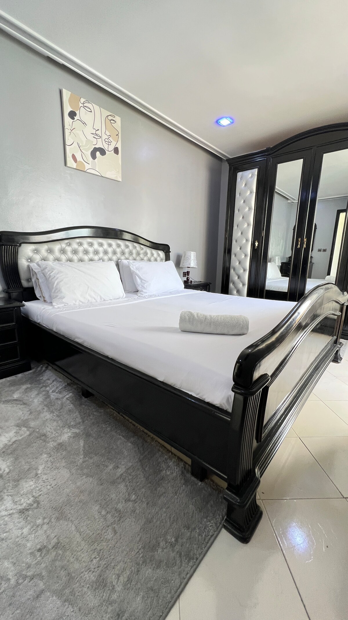 Je vous propose un magnifique appartement entièrement rénové, situé au cœur de Tanger, à seulement 5 minutes à pied de la Marina . Ce logement comprend trois chambres, dont une parentale avec balcon et vue sur la corniche plage Les chambres offrent 2 lits doubles et 2 lits simples. La salle de bain offre une belle douche toilet Tele smart tv et Wifi. La cuisine est entièrement équipée (four, micro-ondes, grille-pain, bouilloire). Je serais ravie de vous accueillir chez moi.