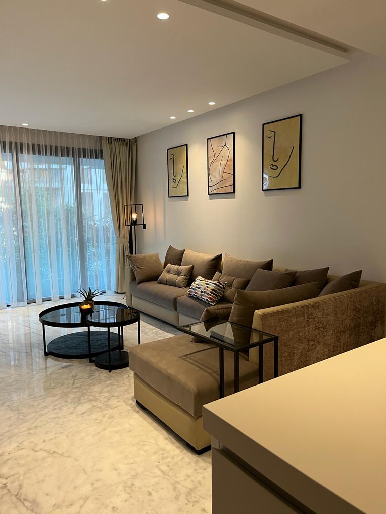 Discover the charm of this serene 2-bedroom villa apartment blending traditional Moroccan design with modern comfort. Enjoy peaceful mornings on the terrace overlooking the sea and lush gardens. The space features bright rooms, elegant décor, and (paid) access to a large pool nearby during summer, salons, and a fully equipped kitchen. Just 15 minutes from Tangier’s vibrant center and 10 minutes from the beaches — the perfect mix of calm, culture, and coastal beauty.