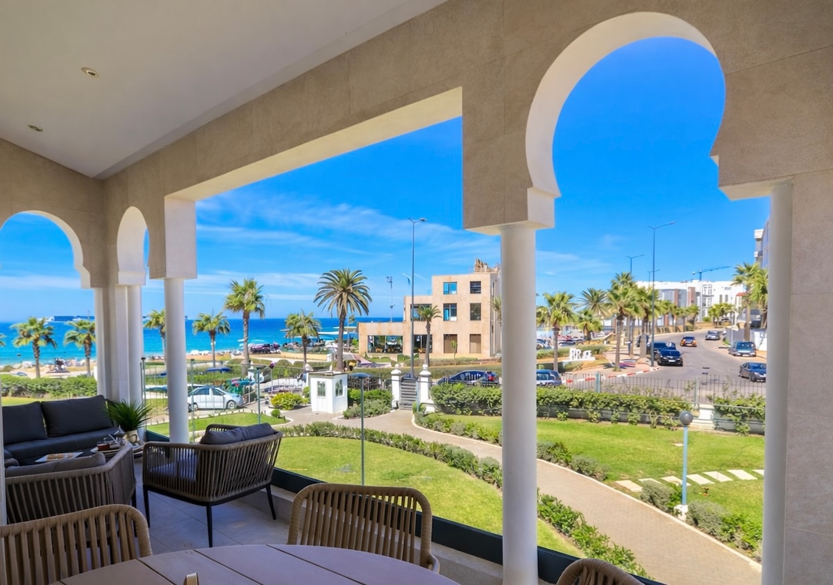 Welcome to HomeDarna — your peaceful, stylish retreat in Tangier. This beautifully renovated and fully furnished apartment offers comfort, convenience, and memorable experiences — perfect for families, friends, and business travelers. With a large private terrace, free parking, and a fantastic location close to both the airport and Grand Stade de Tanger, your adventure in Tangier starts here. The large terrace is one of the standout features of this listing, perfect to enjoy the sunset.