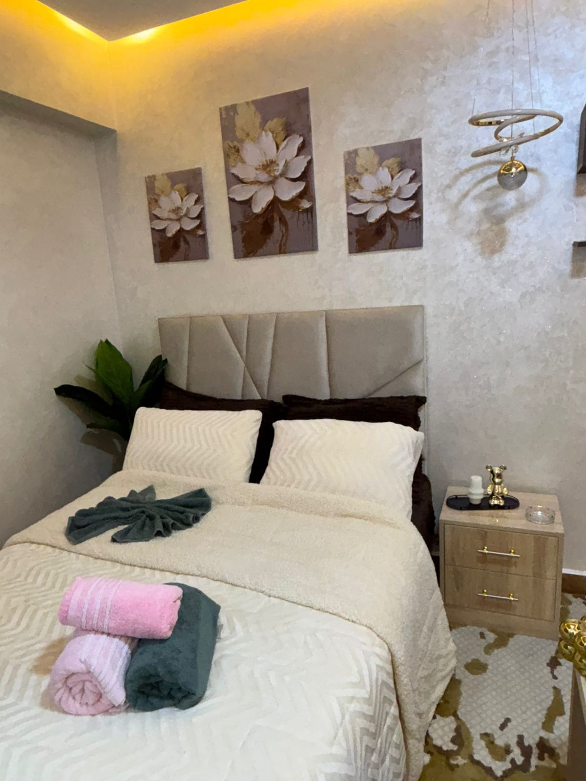 MERCI DE LIRE AVANT DE RESERVER Pour une expérience unique à Tanger, Bienvenue dans notre appartement moderne idéalement situé à 0 km du centre de Tanger, nous vous proposons cet appartement élégant aux couleurs sobres et épurées, en plein cœur de Tanger. A deux pas des endroits branchés de Tanger, Notre appartement vous promet élégance et praticité Remarque important: - Appartement au 4éme étage SANS ASCENSSEUR. - Appartement destinée uniquement à une clientèle familiale ou COUPLE MARIÉ.