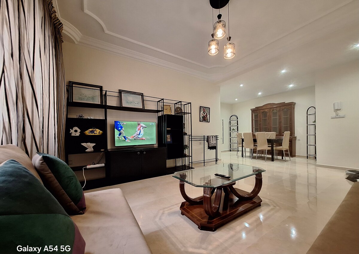 Ce logement familial de 115 m2, est situé dans la plus belle avenue de tanger. Cafés, restaurants et supérette se trouvent en bas de l’immeuble. La Marina, lieu très animé, est à 5 minutes de marche. Mac do et KFC à 10 minutes à pieds. l’appartement est parfaitement insonorisé et climatisé. il se compose de: -une suite parentale avec sa salle de bain -une chambre avec 2 lits simples -une deuxième salle de bain -un grand salon avec 3 grandes banquettes -IPTV et WiFi Shahid.
