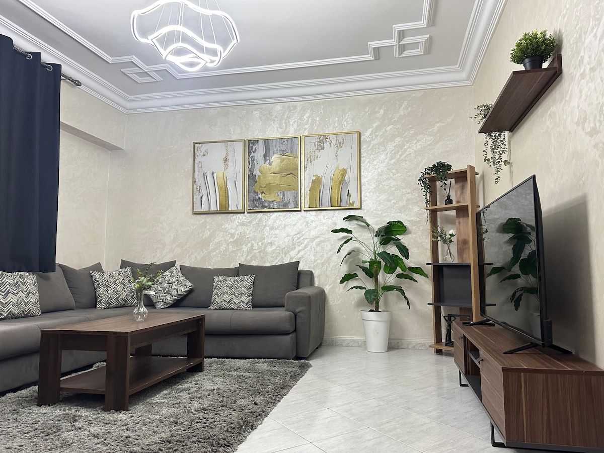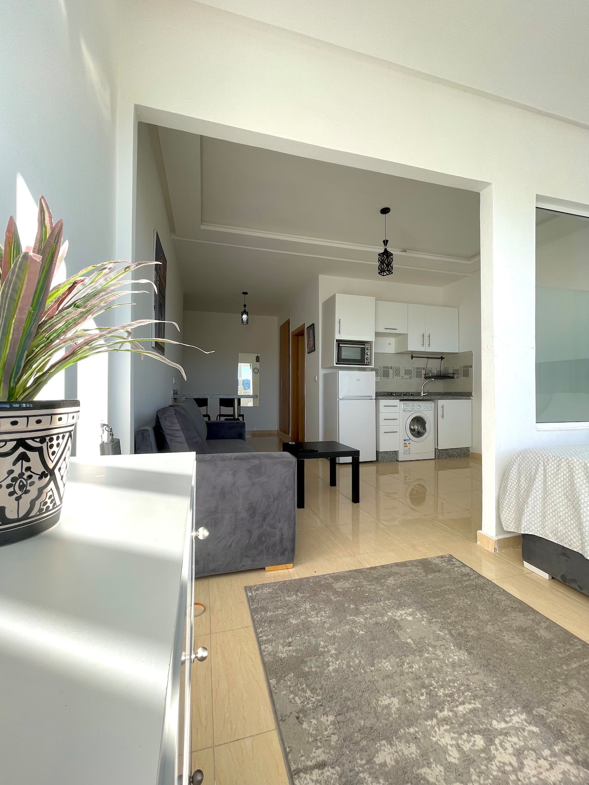 Located in the heart of Tangier, this apartment combines urban chic with coastal tranquility. Each carefully decorated room invites relaxation. The modern interior, featuring an American kitchen and an Italian shower, is designed for your comfort. Enjoy high-tech amenities such as centralized air conditioning, fiber optic Wi-Fi, Smart TV, and Netflix. Just steps away from the beach and the TGV station, City & Sea is a luxurious oasis.