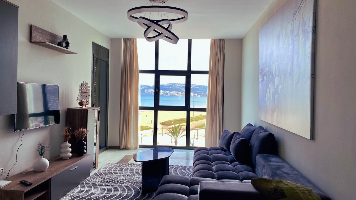 Emplacement n °1 à TANGER! Plage directement en face avec un grand balcon vue partielle de la mer. Meilleur emplacement à Tanger. Télévision par satellite-WiFi Fibre, Netflix, Iptv.Tout est accessible à pied marina ,veille ville,Macdonald, pubs,cafés.... Les voyageurs munis d'une voiture auront une place de parking gratuite dans le garage de la résidence avec accès direct à l'appartement.Sécurité 24h/24 . Soyez mon voyageur. * Avant de réserver, veuillez lire attentivement ma description MERCI🙏🙏