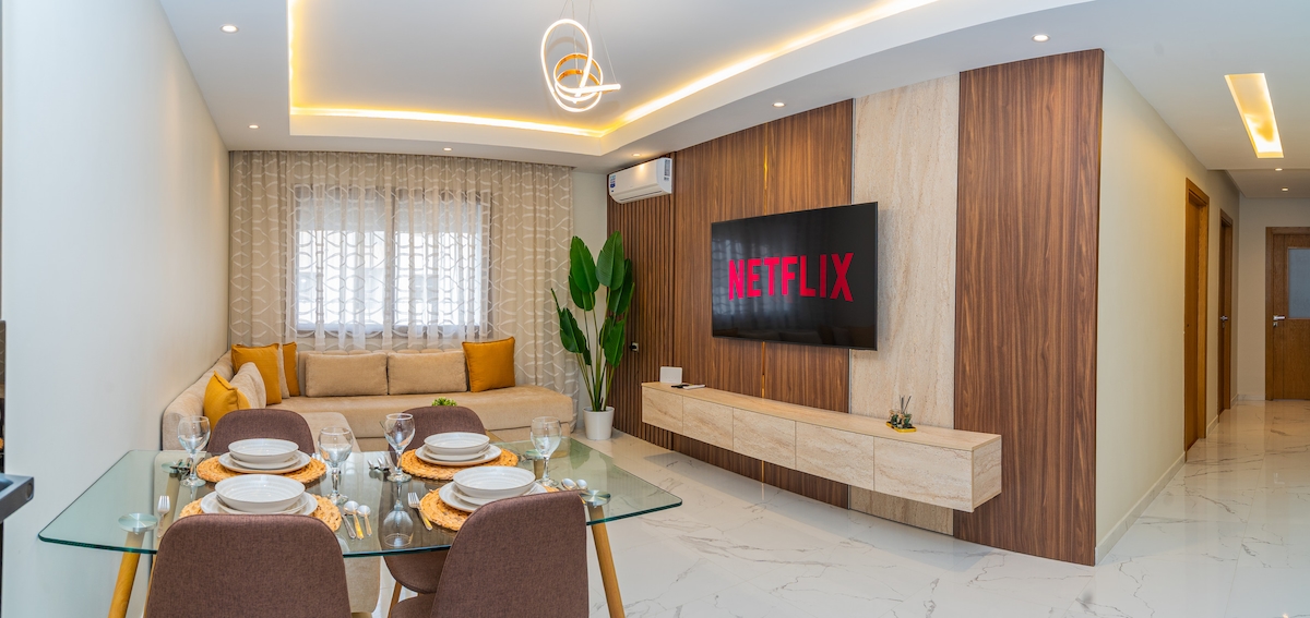 Welcome to our brand new two-bedroom apartment located in a prime area of Tangiers. This upscale property is situated in one of the most sought-after areas in the city with 24-H concierge & is only a 10 min walk from the Train Station, City Centre Mall, Ibn Battuta Mall and beaches. It offers both convenience and luxury at your doorstep. Private parking available. The apartment boasts: fibre optic WiFi, an option for chauffeur and a Moroccan breakfast prepared by our governess (additional cost)