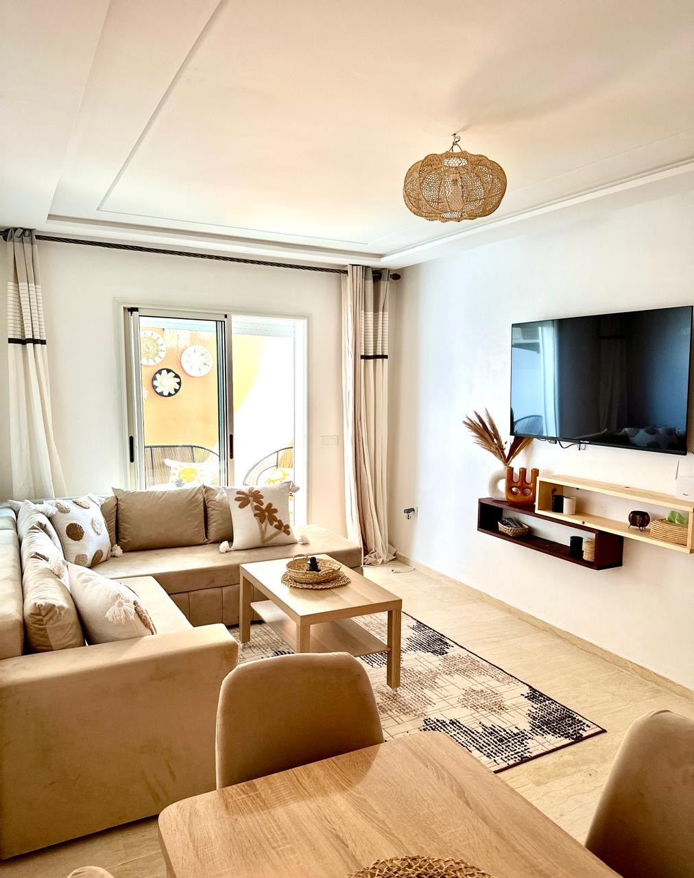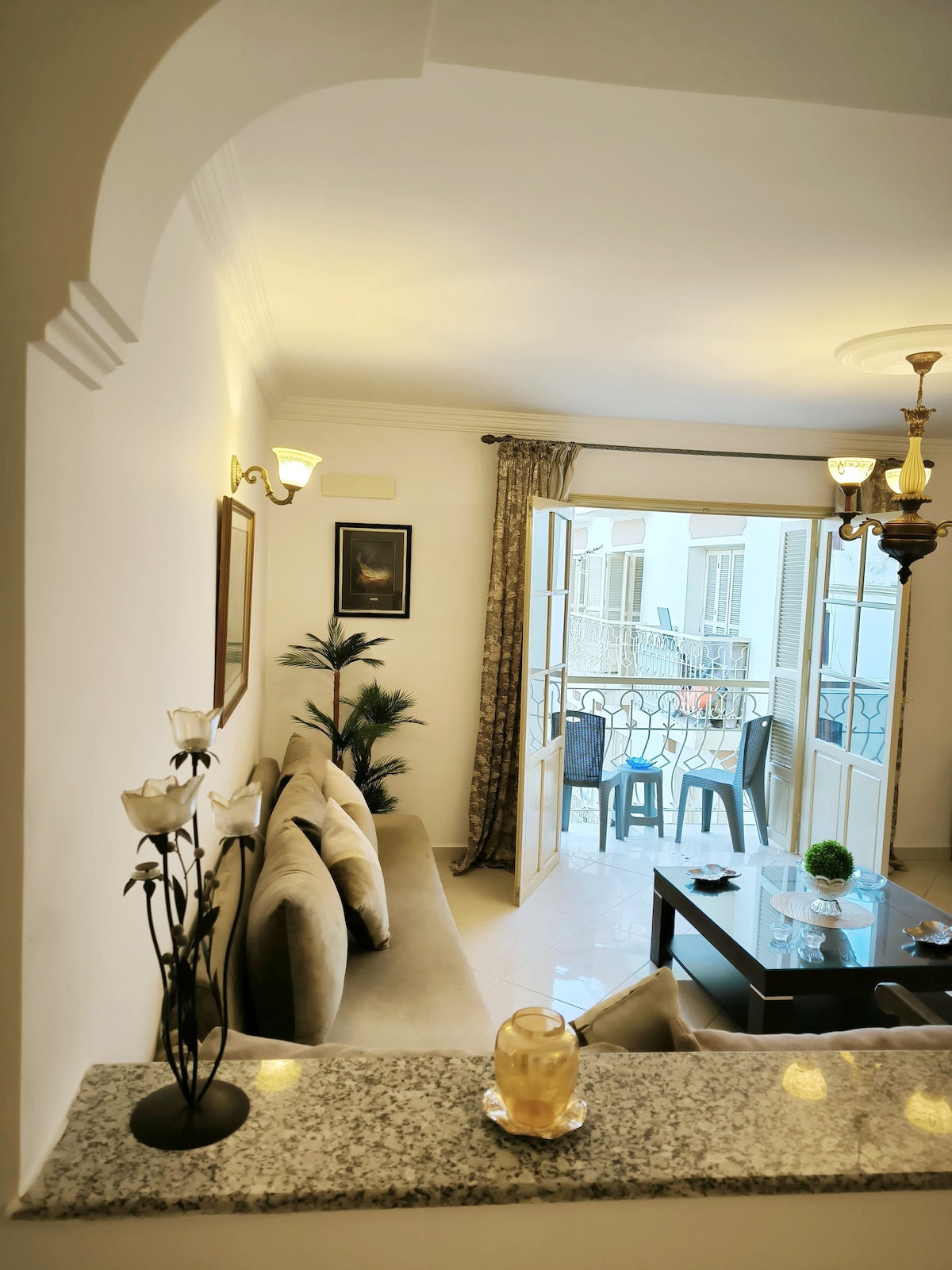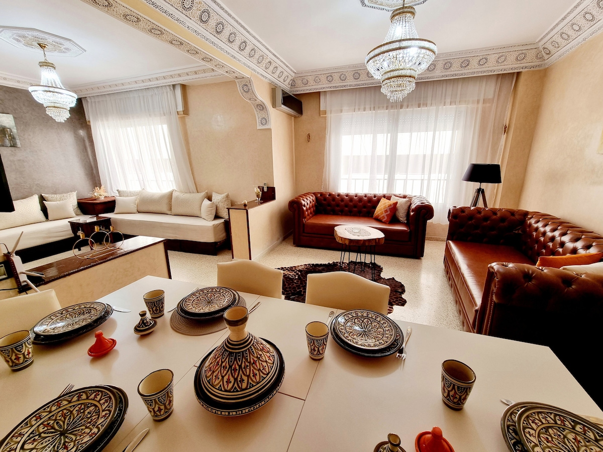 This charming luxury apartment is located in the heart of Tangier’s Mesnana Golf area Enjoy fast Wi-Fi, free parking, and handcrafted Moroccan decor that adds a warm, and giving the space a soulful Moroccan touch,Just 5 minutes from the beach, forest, and surrounded by cafés, luxury restaurants, and supermarkets. Located on a main road with easy transport access This apartment is ideal for couples, families, or anyone looking to explore Tangier while enjoying a peaceful and stylish home base.