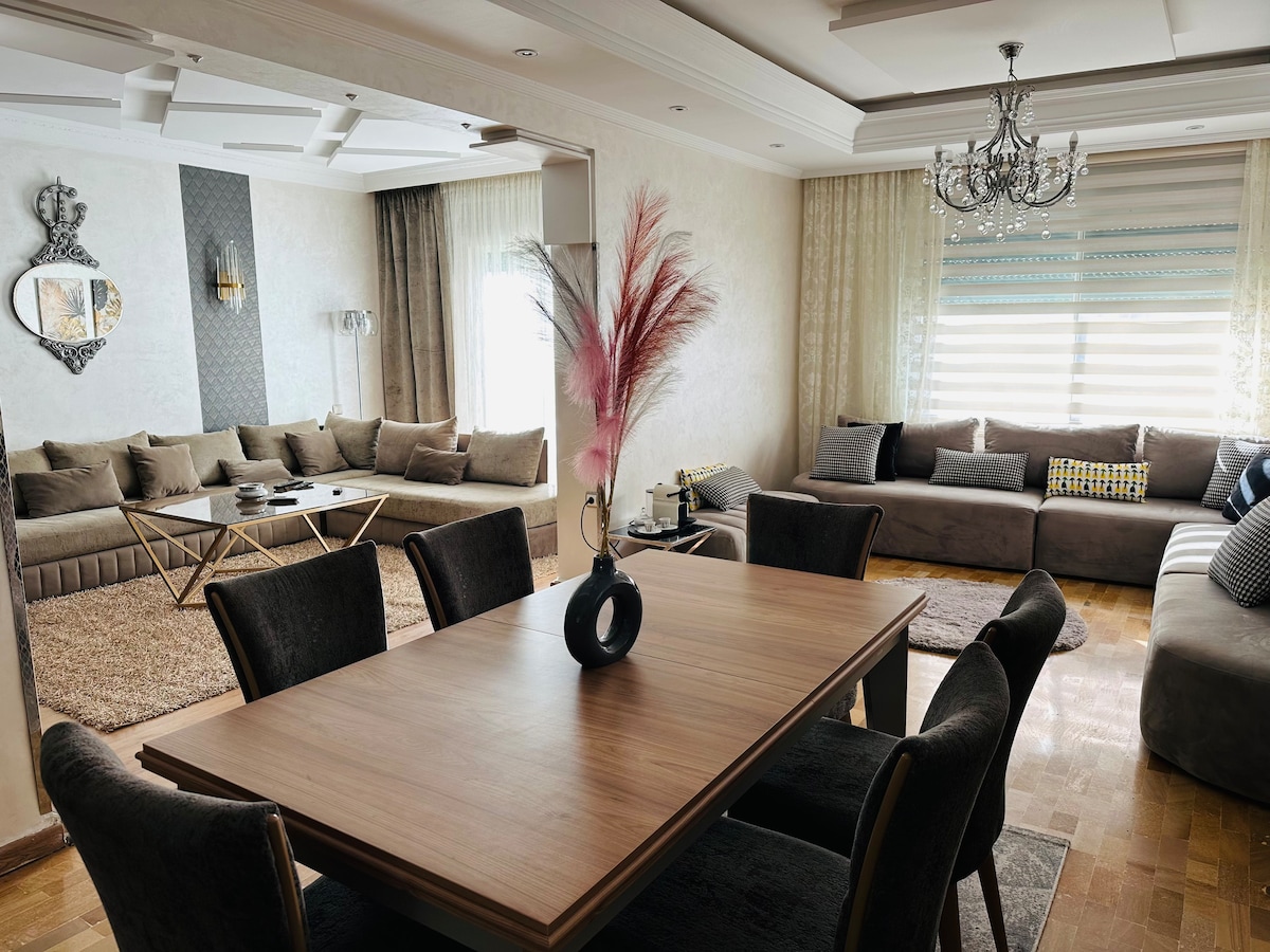 Located in the heart of Tangier, this apartment combines urban chic with coastal tranquility. Each carefully decorated room invites relaxation. The modern interior, featuring an American kitchen and an Italian shower, is designed for your comfort. Enjoy high-tech amenities such as centralized air conditioning, fiber optic Wi-Fi, Smart TV, and Netflix. Just steps away from the beach and the TGV station, City & Sea is a luxurious oasis.