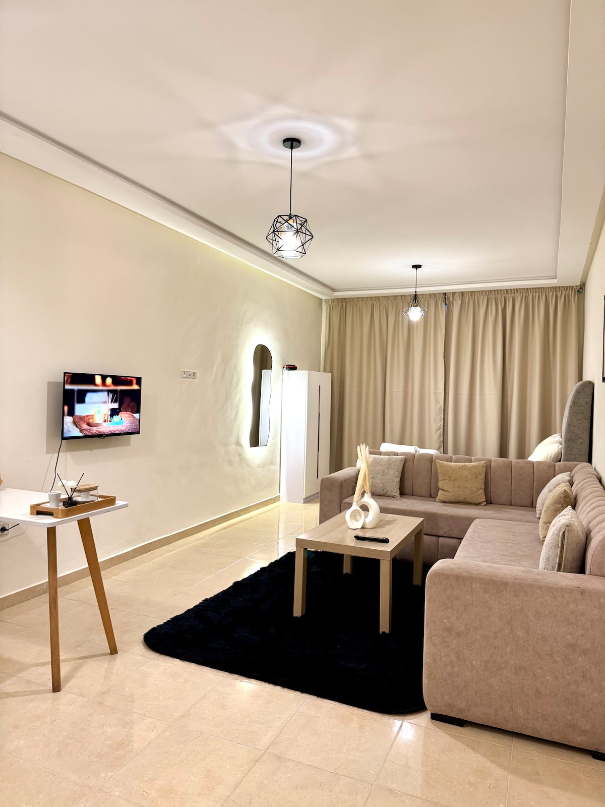 Located in the heart of Tangier, this apartment combines urban chic with coastal tranquility. Each carefully decorated room invites relaxation. The modern interior, featuring an American kitchen and an Italian shower, is designed for your comfort. Enjoy high-tech amenities such as centralized air conditioning, fiber optic Wi-Fi, Smart TV, and Netflix. Just steps away from the beach and the TGV station, City & Sea is a luxurious oasis.