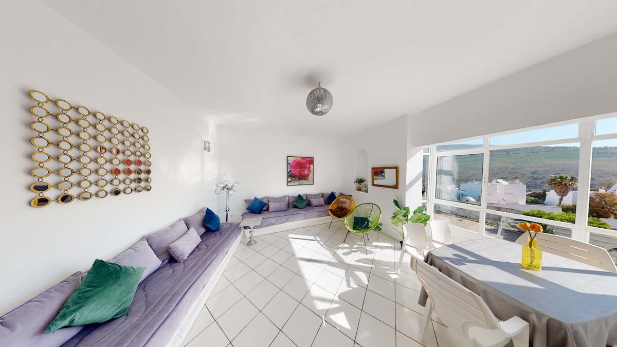 Ubicado junto al icónico Palacio Forbes, este alojamiento ofrece una conexión auténtica con el legado cultural de Tánger. Con un diseño elegante, vistas panorámicas al mar y una decoración cuidada, combina lujo y confort en un entorno sereno. Ideal para quienes buscan una estancia especial frente al mar, con acceso a los principales puntos de interés de la ciudad. Disfruta de atardeceres únicos desde el balcón cerrado y de interiores pensados para el descanso y la inspiración.