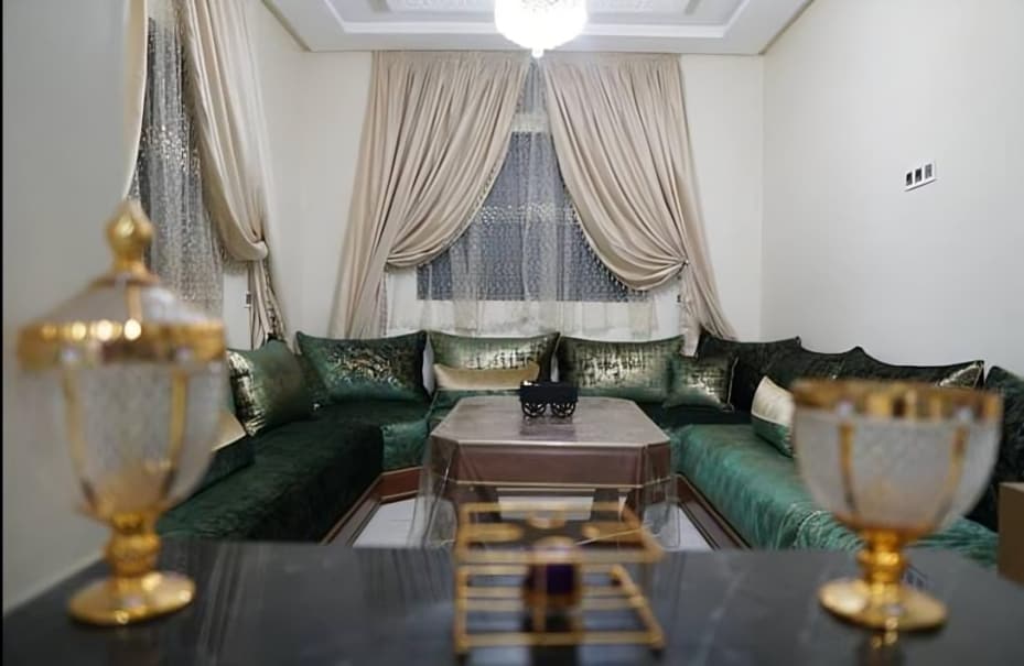 Ideal villa for AFCON 2025, 10–15 min from Grand Stade de Tanger, 15 min from the airport, and 9 min from Tanger’s largest shopping center, Socco Alto. It features 5 bedrooms with private bathrooms and TVs, 3 living rooms including one with a fireplace and large TV, a spacious garden with outdoor lounges, fire pits, and an infinity pool with panoramic ocean views. Breakfast available on request. Unmarried Moroccan or Arab couples cannot stay together.