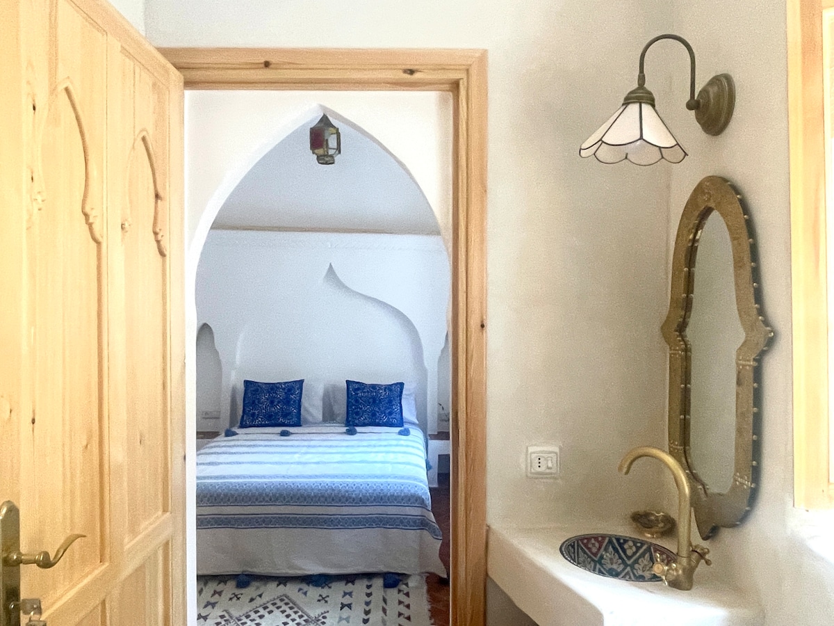 BLue House TownWelcome, we are at your service. We are pleased to host you. We offer a free breakfast between 7 a.m. and 11 a.m. We prepare Moroccan and local meals upon request, coffee and tea at any time for transportation from the city and the airport retreat bed and breakfast (orhanic and fresh). If you are craving fresh air and beautiful panoramic views you have found the right place ! Perfect for families , couples, friends and solo travelers, it's the ideal place
